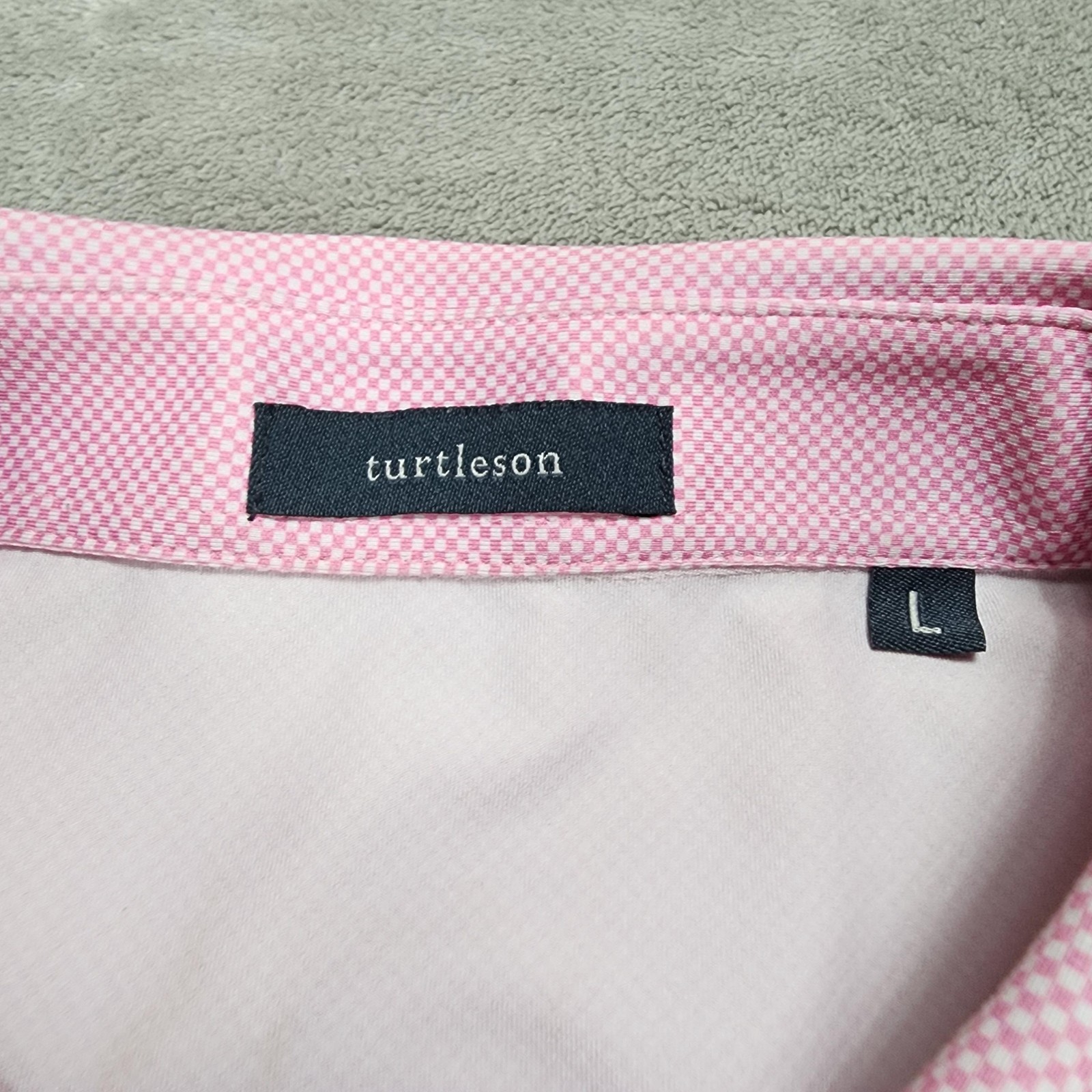 Turtleson Polo Shirt Mens Large Pink Micro Check Performance Golf Stretch Logo