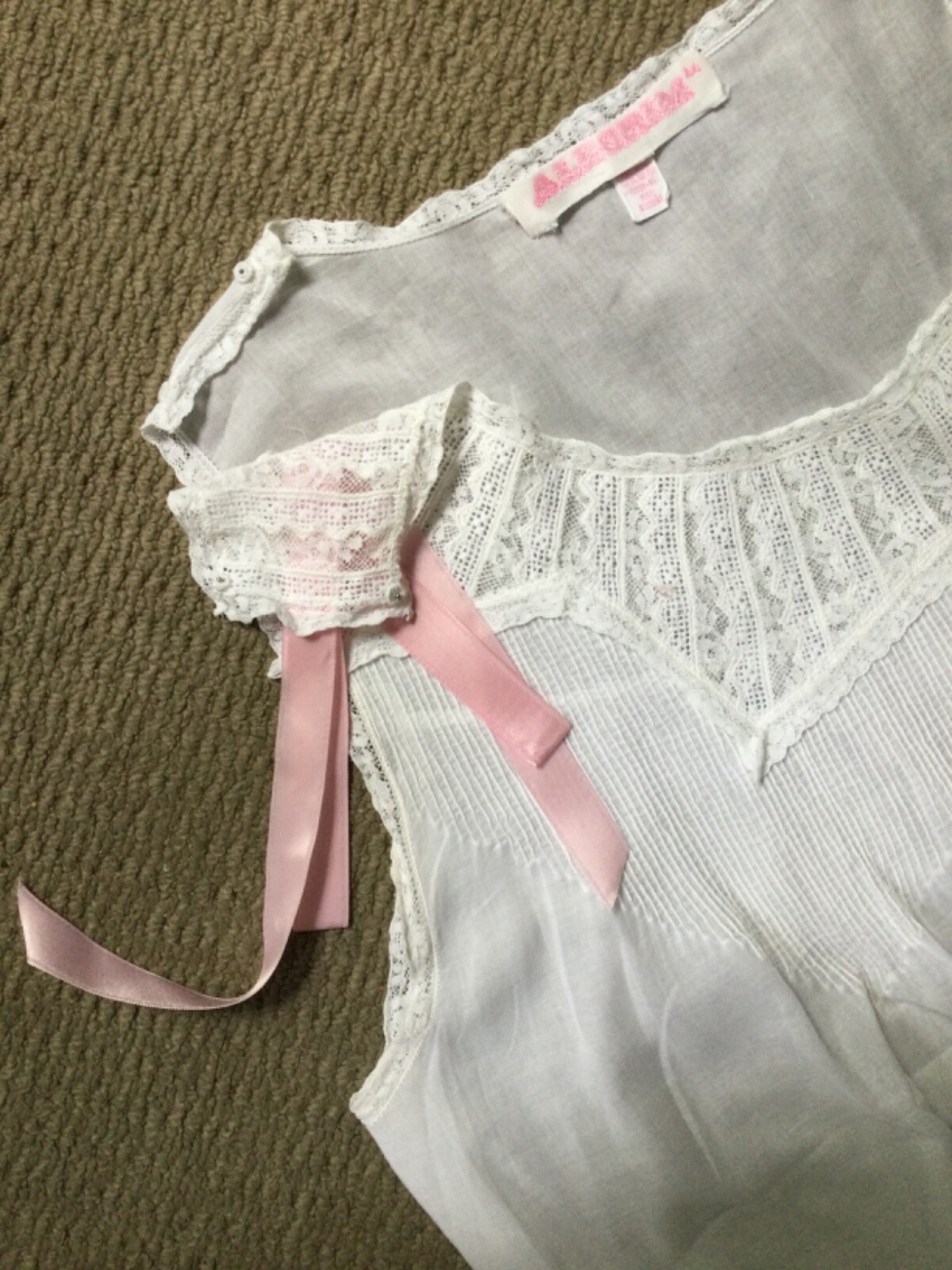 ALEGRIM white 100 cotton fine lace pleats nightgown pink ribbons Women s 44 M/L