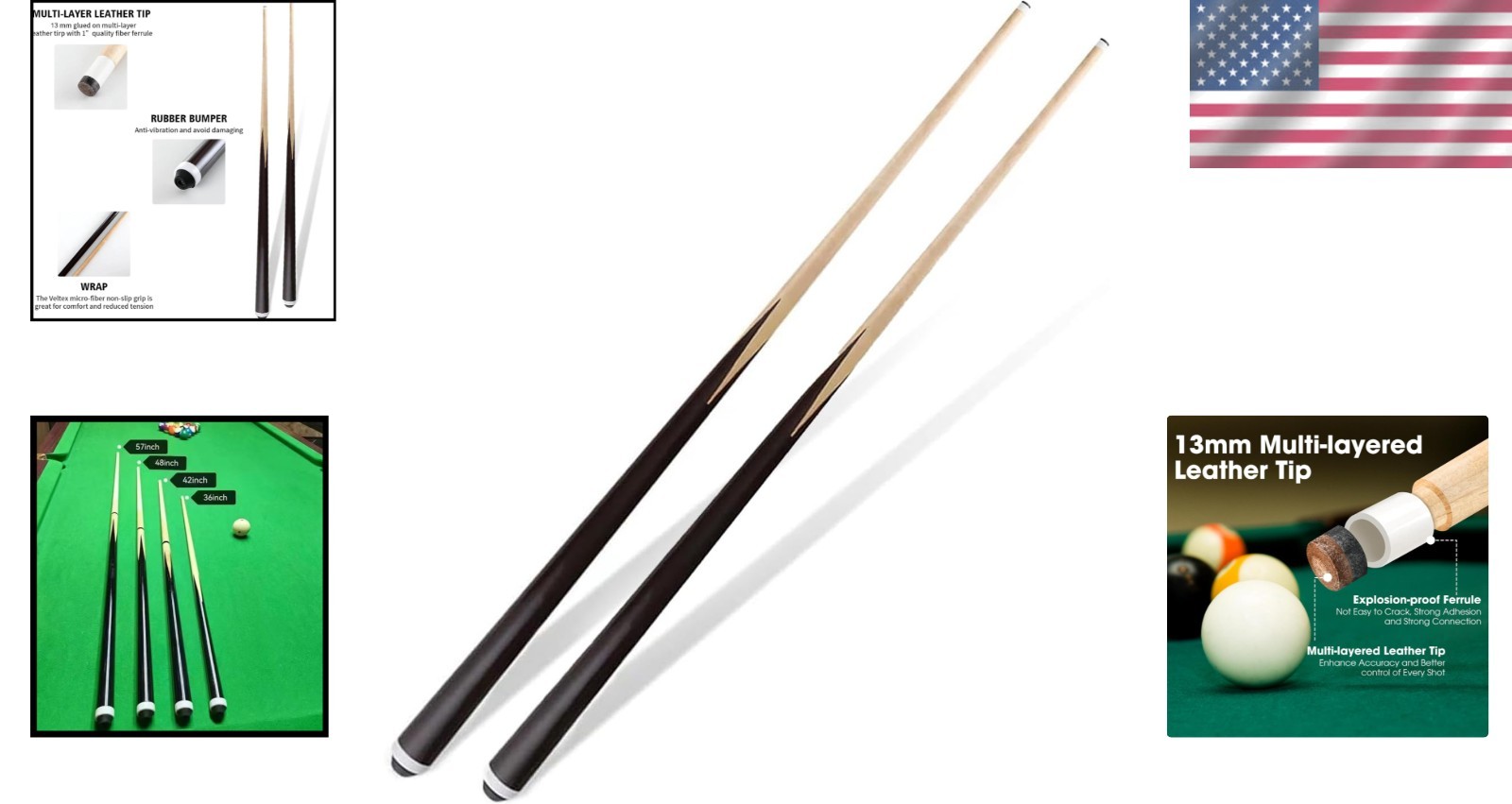 как выглядит Set of 2 Kids Pool Cues - 36 58 Shorty Hardwood Sticks for Young Players фото