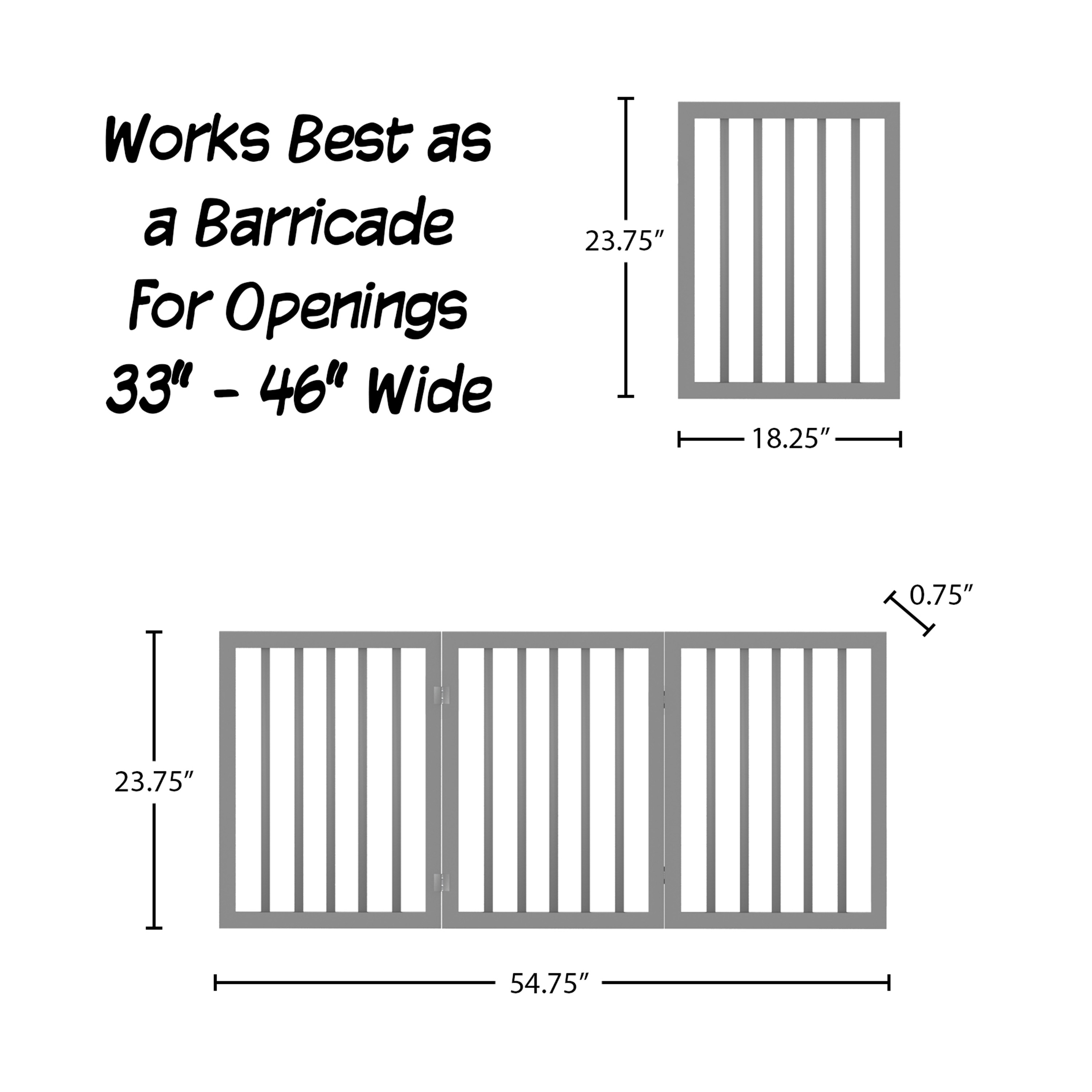Indoor Pet Gate Wooden Freestanding Dog Gate for Doorways Stairs 3 Panel 24 H