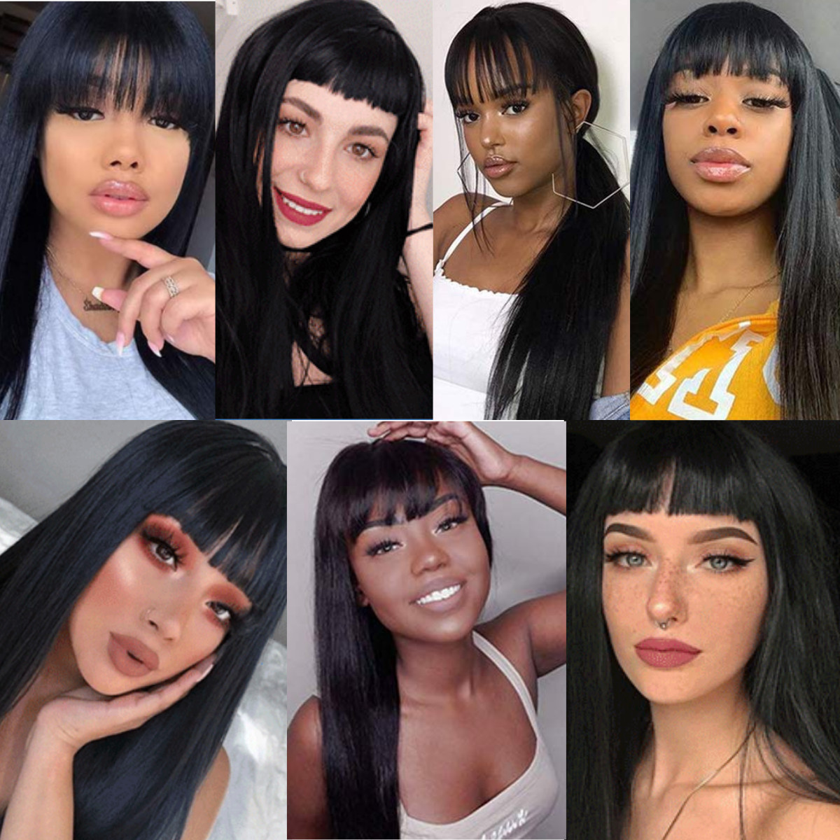Heat Resistant Hair Costume Wig With Bangs Off black Long Straight