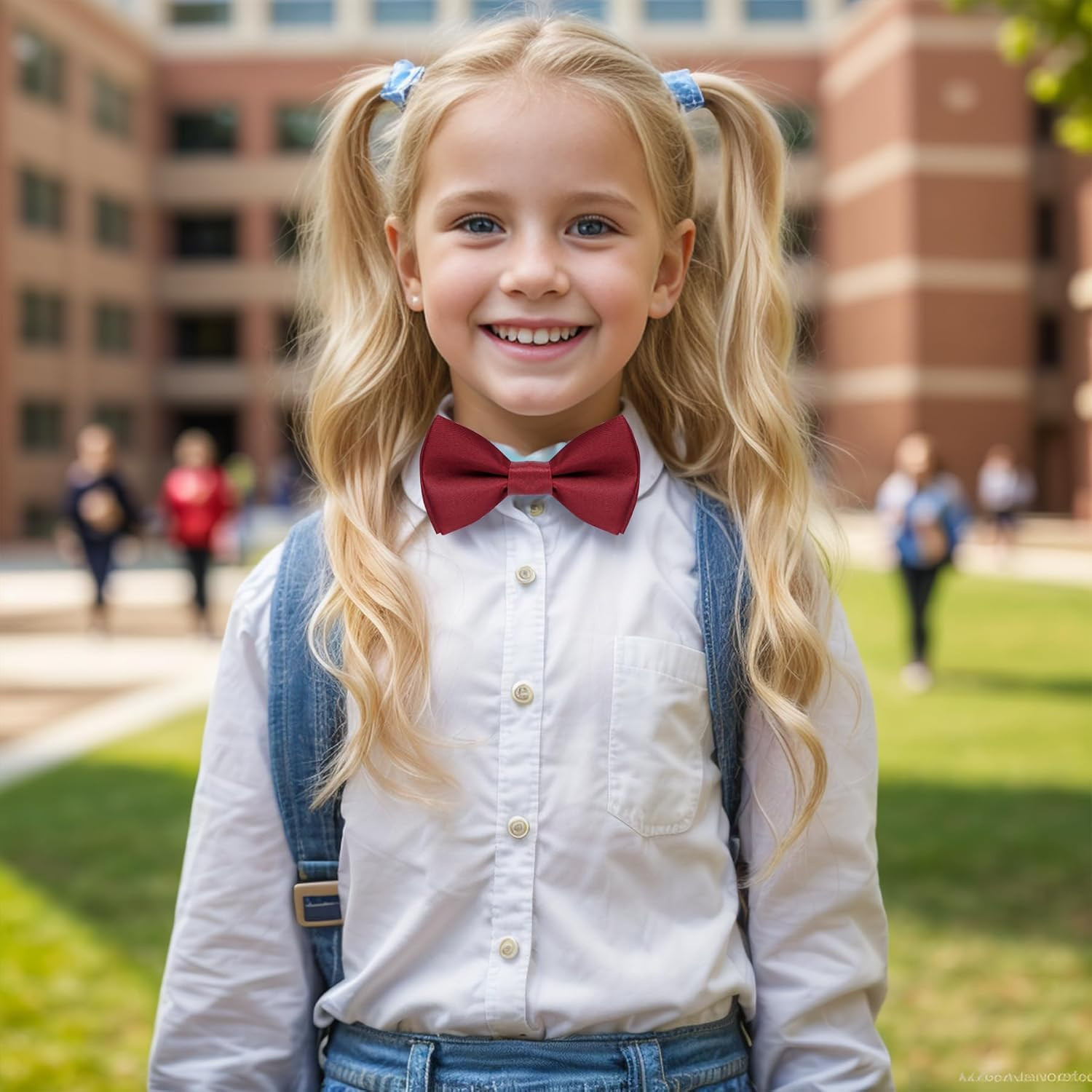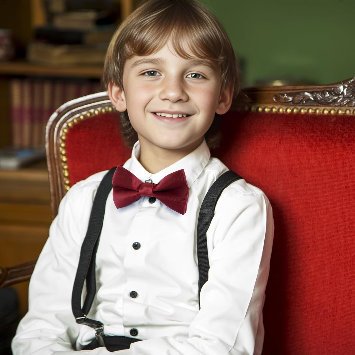 Kids Bow Tie Classic Solid Color Satin Bow Tie Adjustable Neck Bowtie for Kids W
