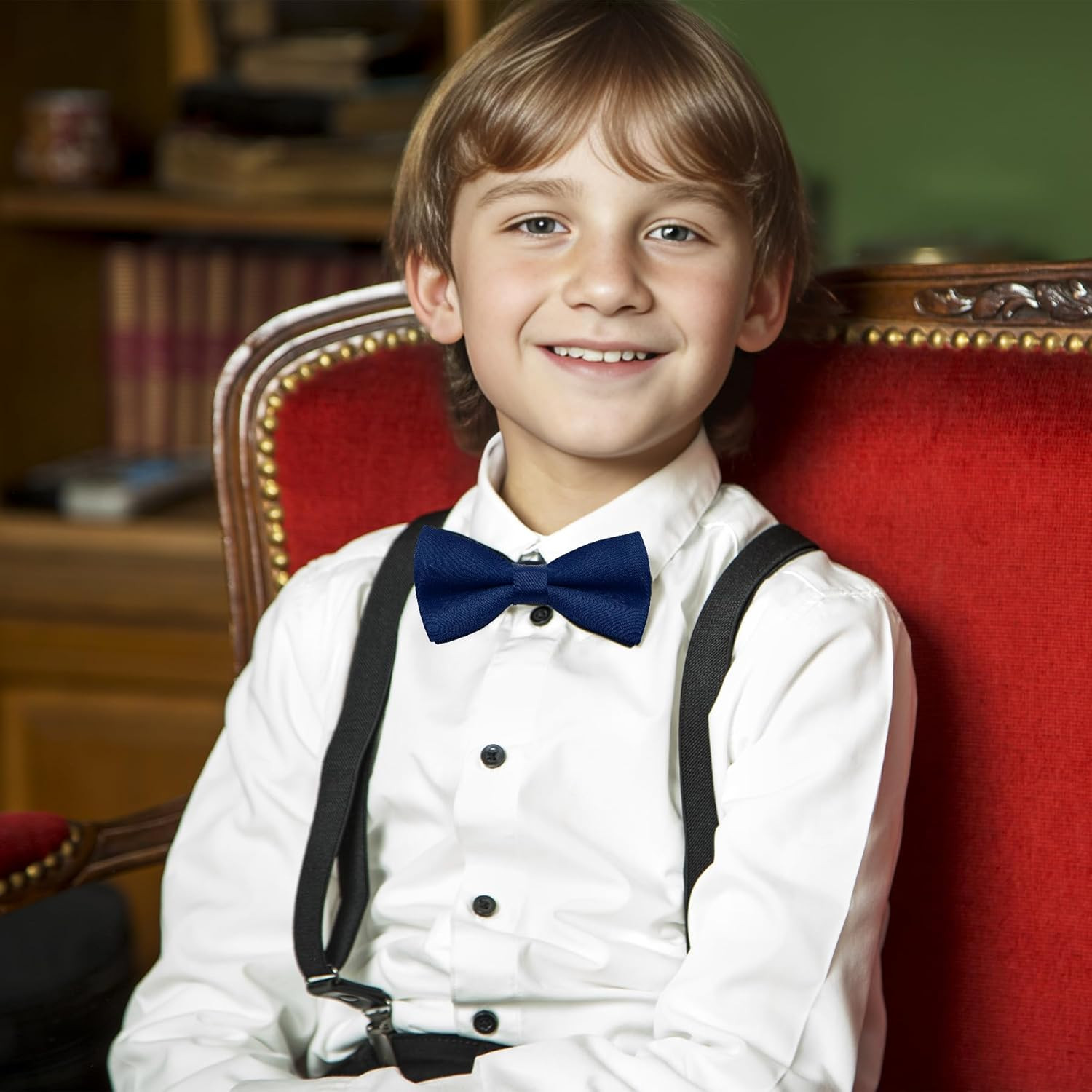 Kids Bow Tie Classic Solid Color Satin Bow Tie Adjustable Neck Bowtie for Kids W