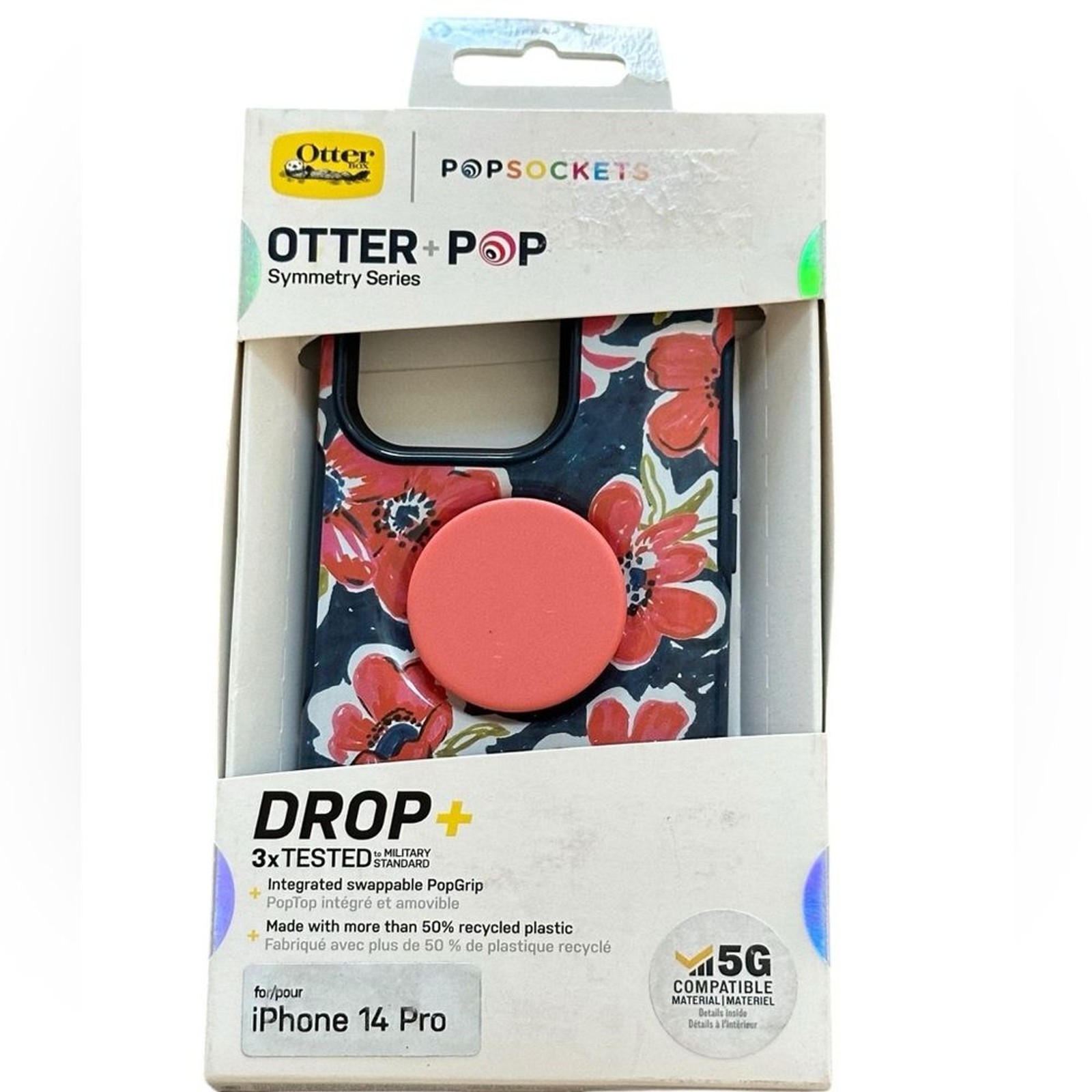 как выглядит OtterBox Pop Symmetry Series iPhone 13 14 Blue Floral Case Coral PopGrip NIB фото