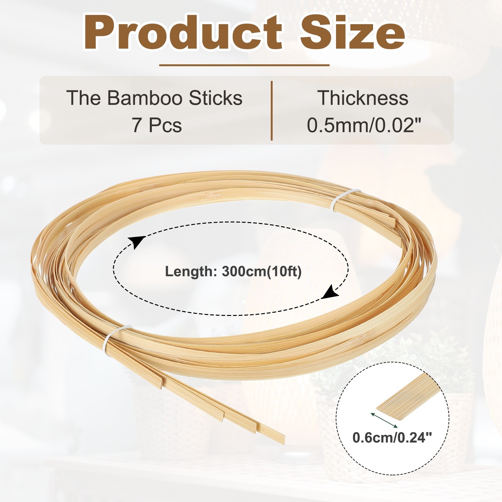 7 Roll Bamboo Strips for Weaving,0.24x10ft Basket Weaving Supplies 0.5mm Thick