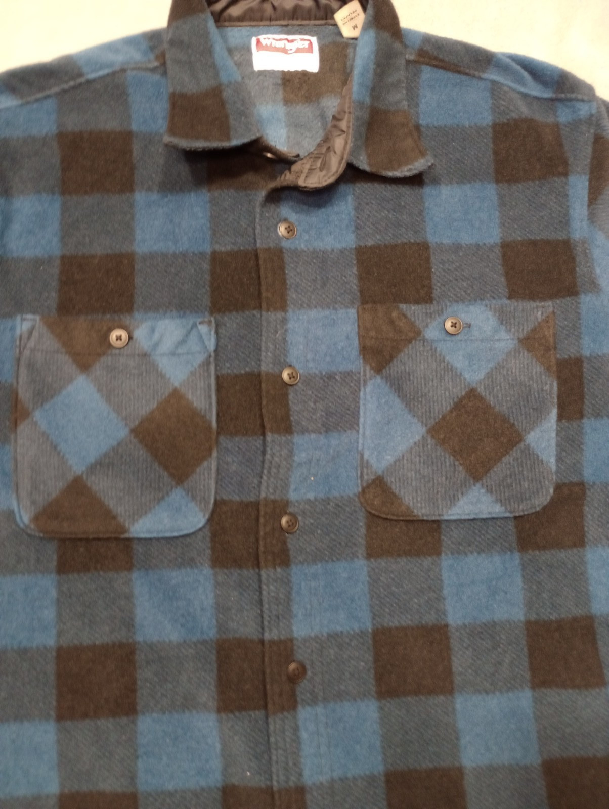 как выглядит Wrangler Flannel Shirt Mens Medium Blue Long Sleeve Button-up Blue Check фото