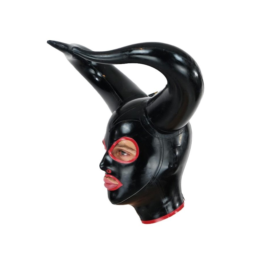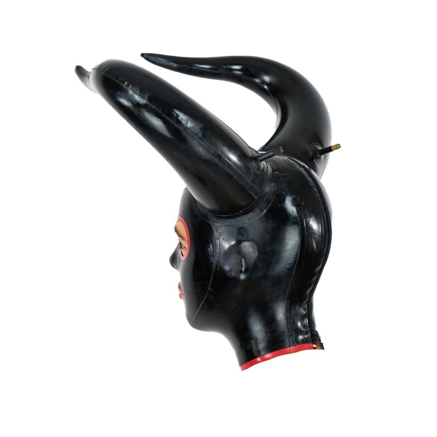 Latex Gummi Inflatable Horn Mask Rubber Fetish Hood Halloween Cosplay Party