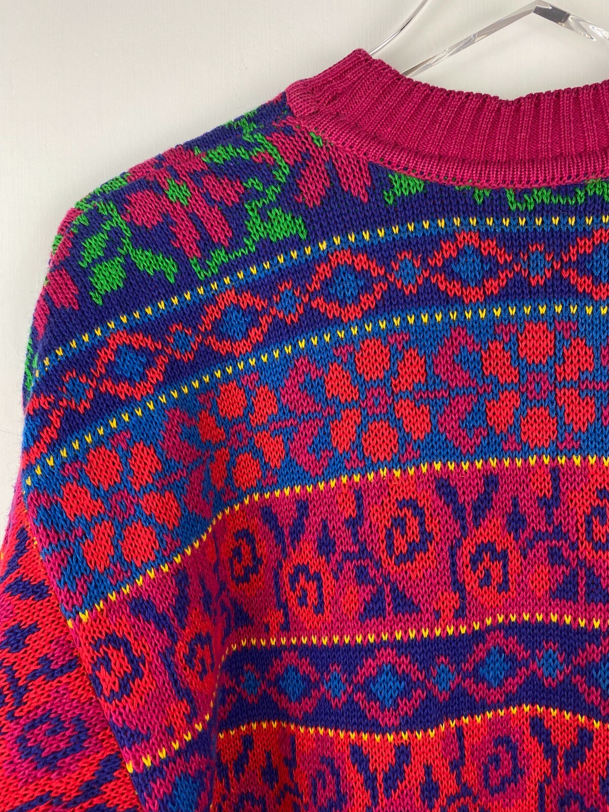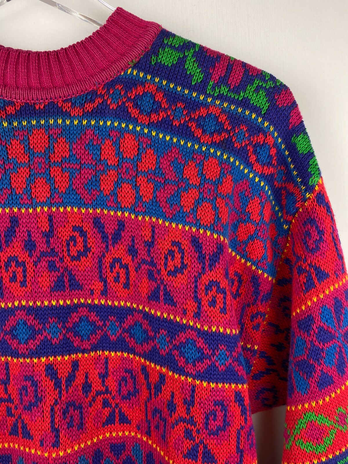 как выглядит Vintage Y2K Colorful Oversized Pullover Sweater Tunic Pink Red Blue Womens L фото
