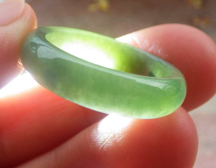 как выглядит Video Certified Green Natural A Jadeite Jade Round Circle Ring NO. 7.75 418542 фото