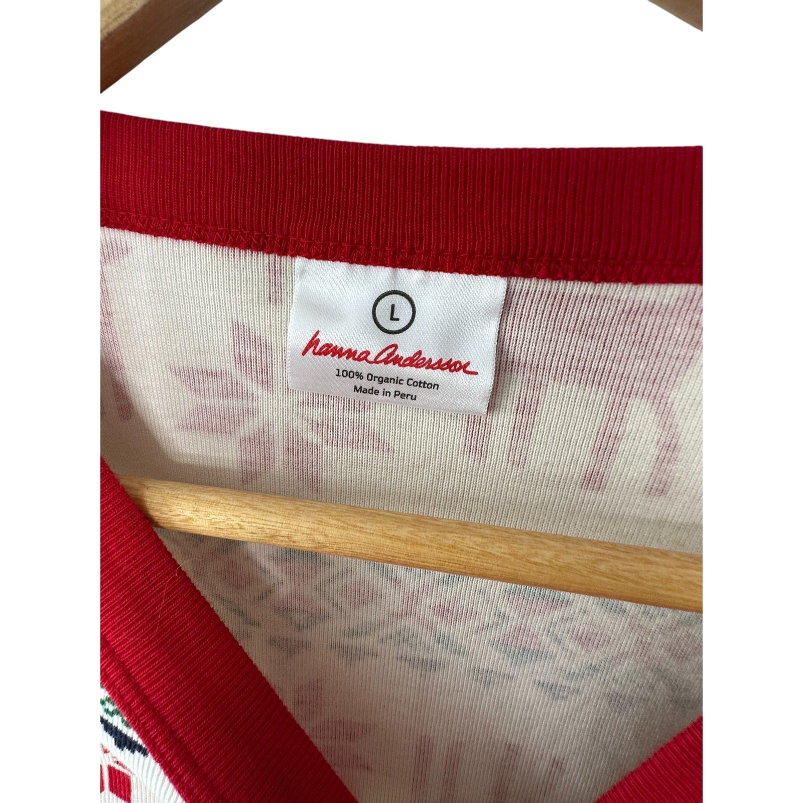 как выглядит Hanna Andersson Red White Holiday Christmas Reindeer Pajama Top Large New фото