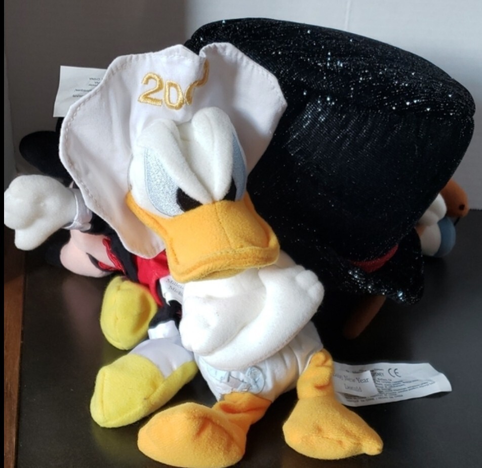 • Vintage Disney Millennium New Year Plush Mickey Mouse Donald Duck Goofy