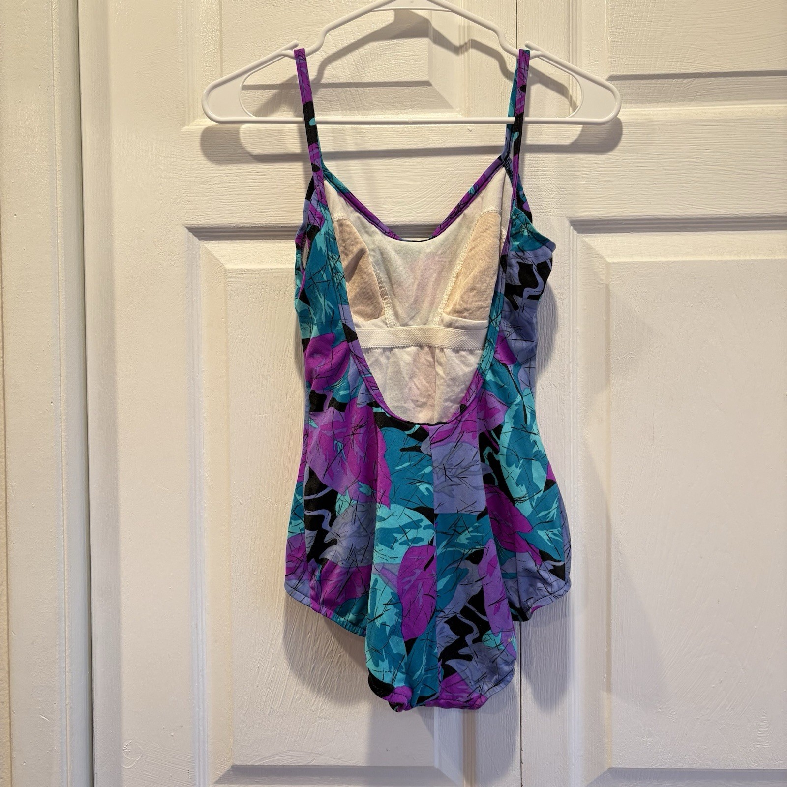 Vintage Jantzen Purple and Blue Low Back One Piece Swimsuit - Size 10
