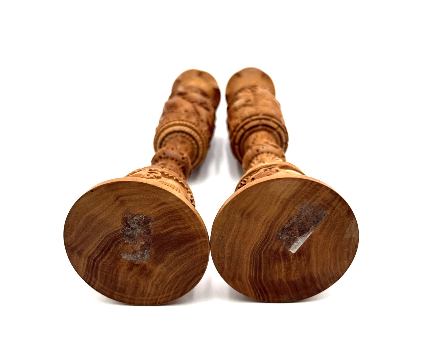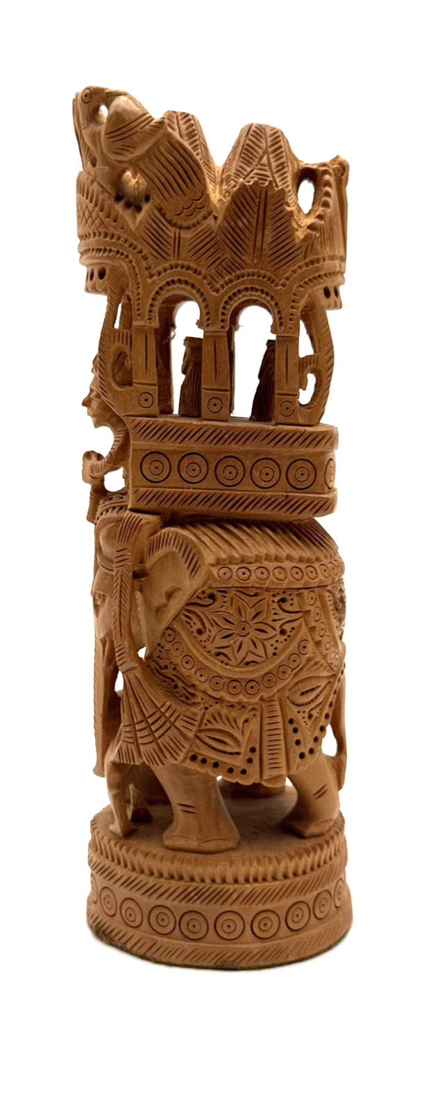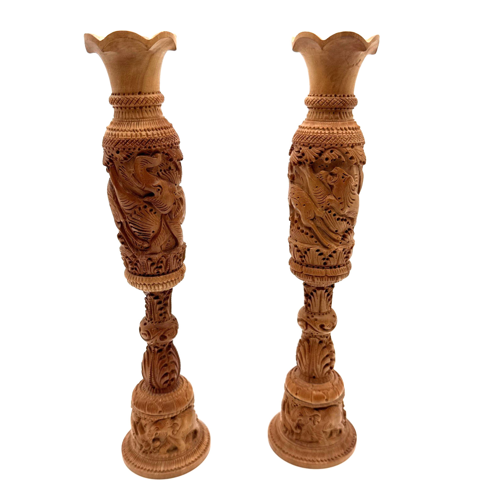 Pair Hand Carved Wooden Flower Bud Vase Elephants Lions Home Garden Decor Art