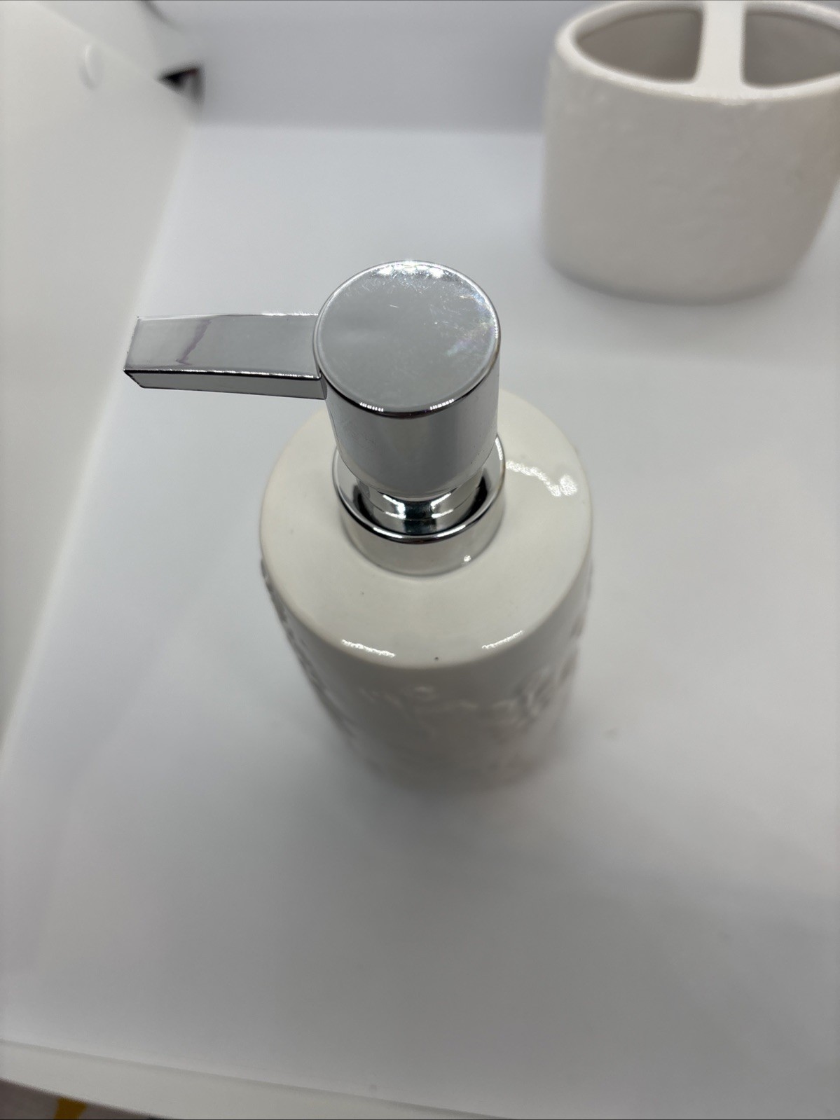 как выглядит 2 Piece Bathroom Set White Flower Ceramic Toothbrush Holder Soap Dispenser New фото