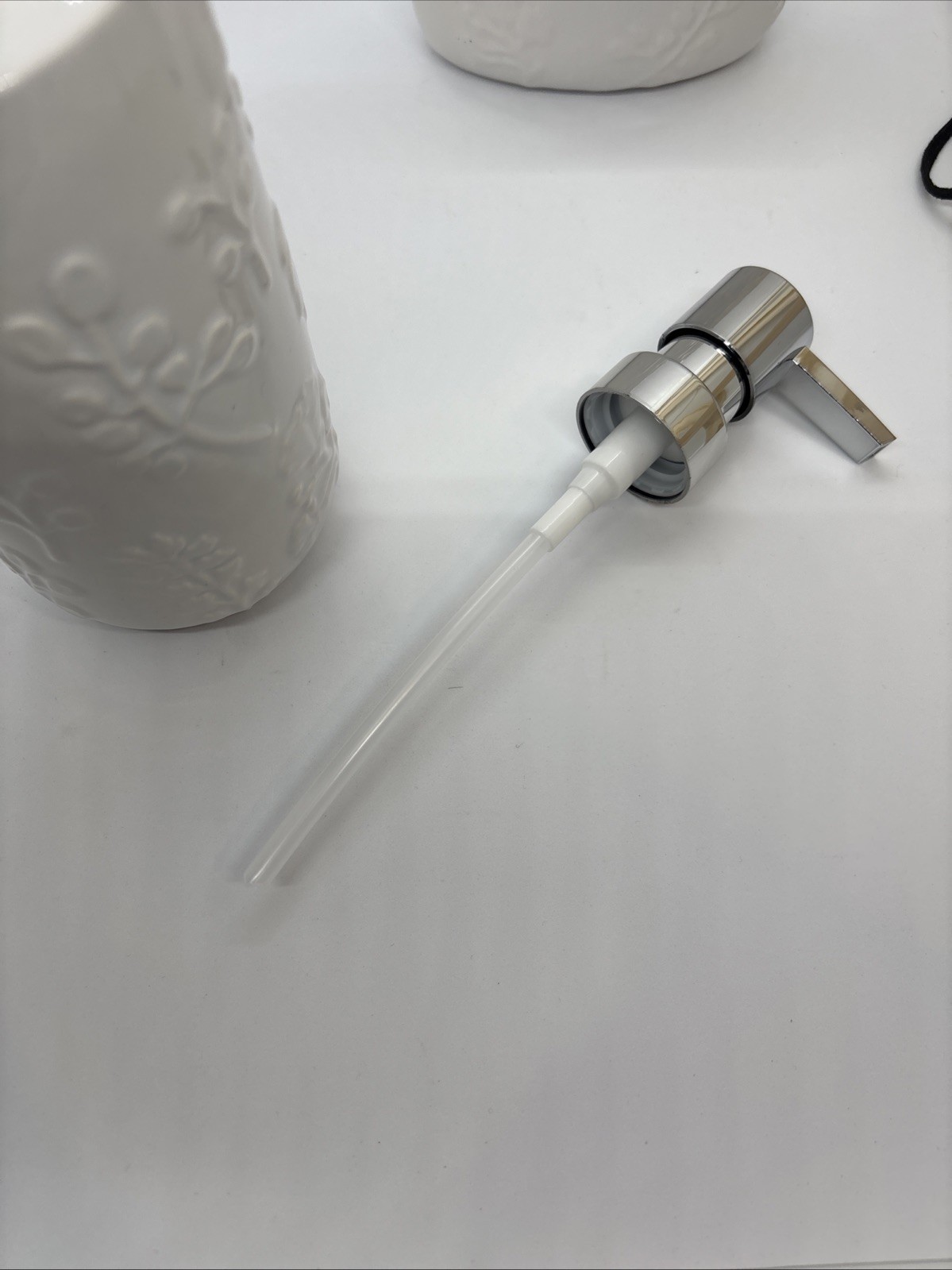 2 Piece Bathroom Set White Flower Ceramic Toothbrush Holder Soap Dispenser New