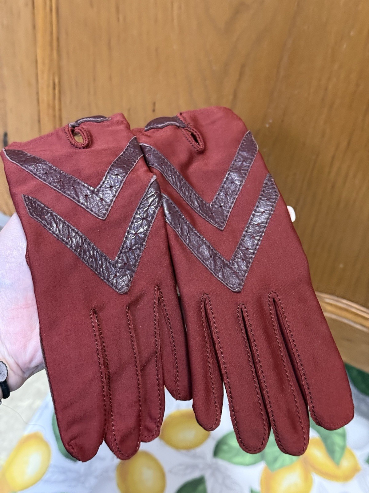 Ladies Brown Rust Red Vintage Driving Style Gloves Small
