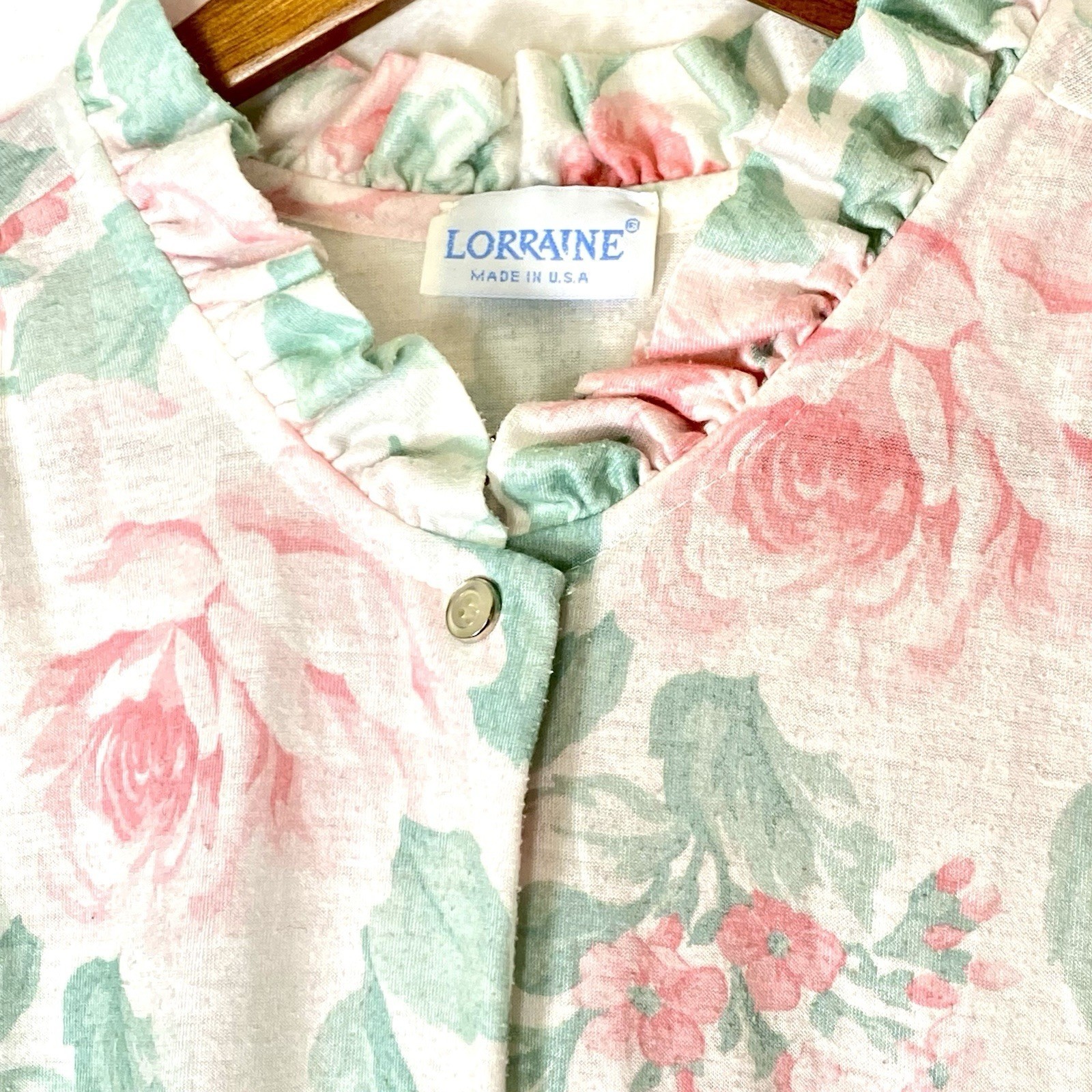 как выглядит Vtg Lorraine Nightgown Sz Medium Sleep Dress Floral Snap Button 70s 80s 90s USA фото