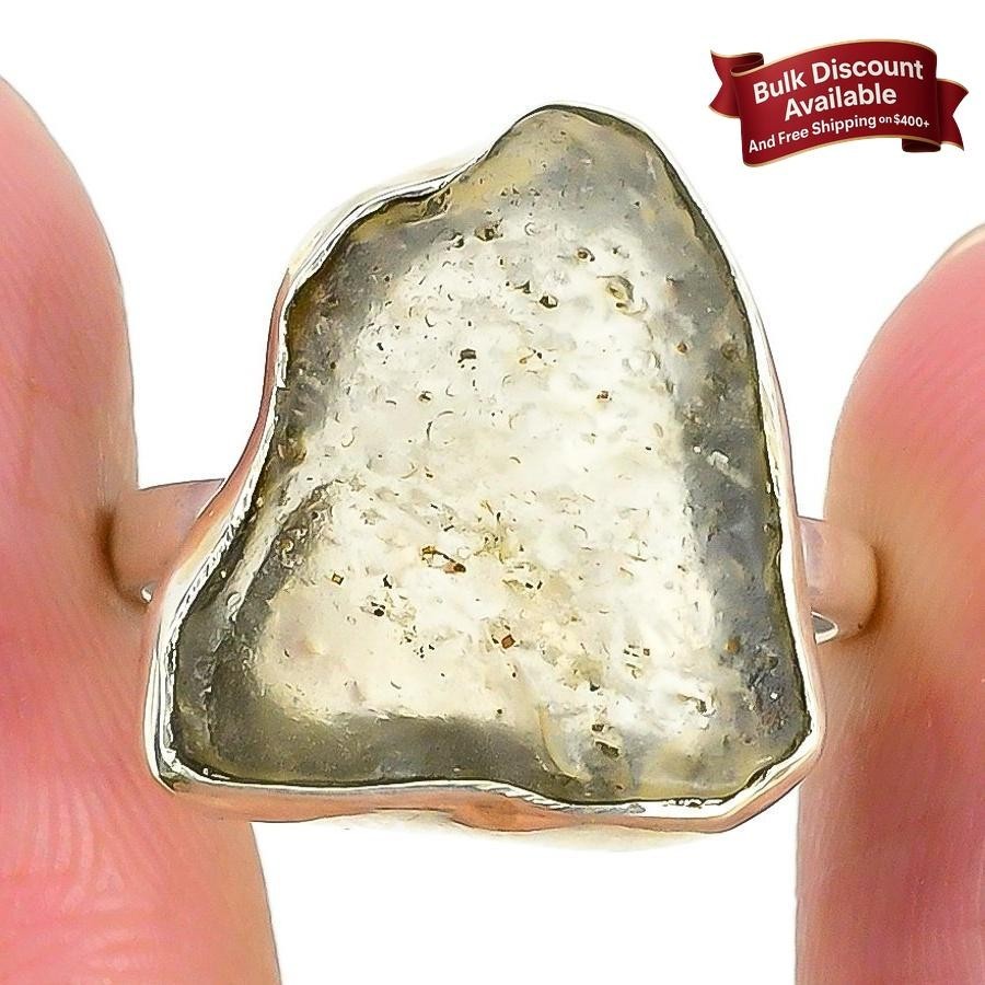 как выглядит Natural Libyan Glass 925 Solid Silver Christmas Statement Ring Jewelry Size 7.5 фото