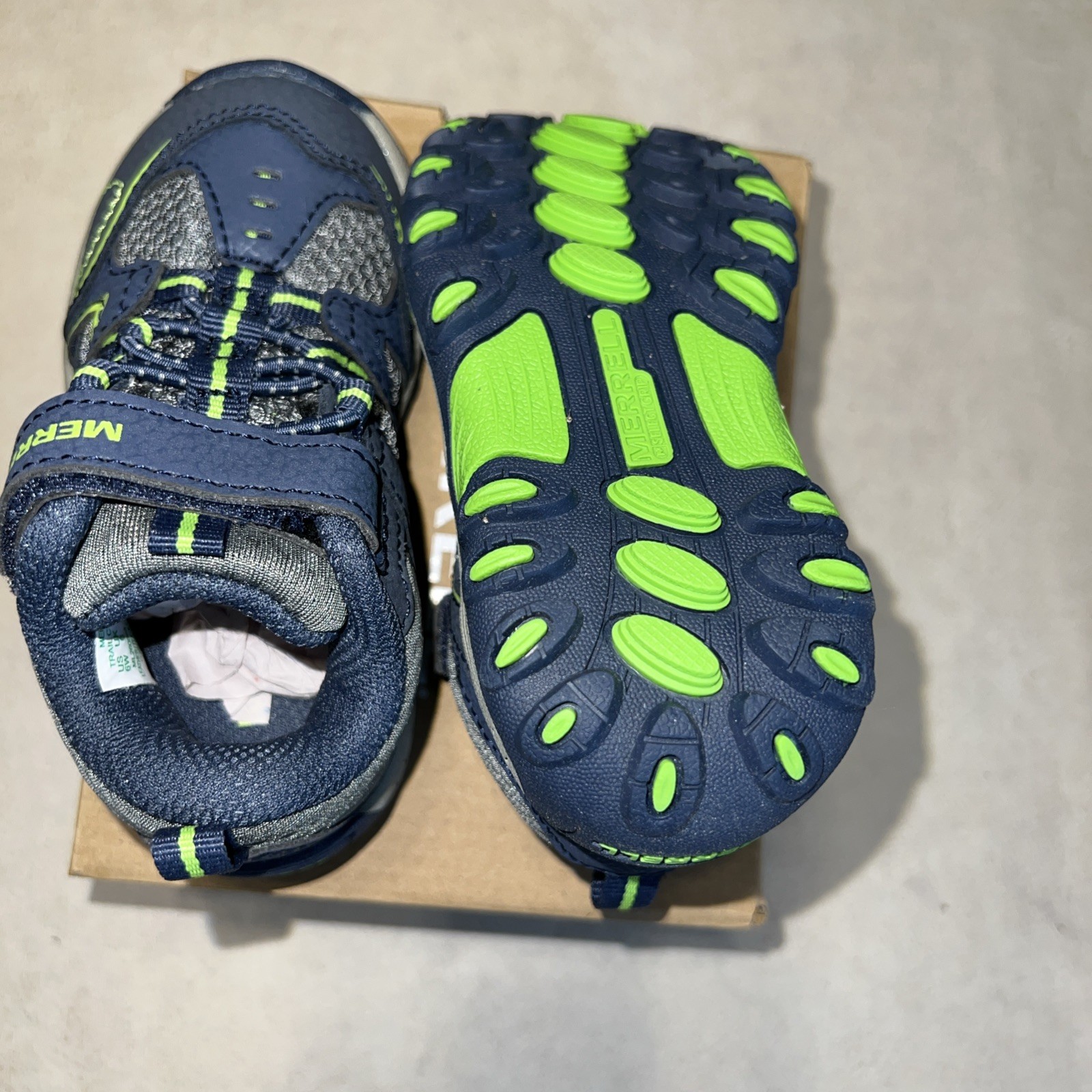 Merrell Trail Chaser Boys Navy/Green Hook Loop Hiking Shoes Size 6W