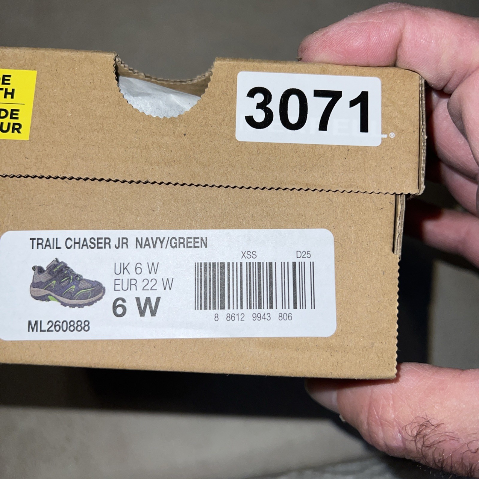 как выглядит Merrell Trail Chaser Boys Navy/Green Hook Loop Hiking Shoes Size 6W фото