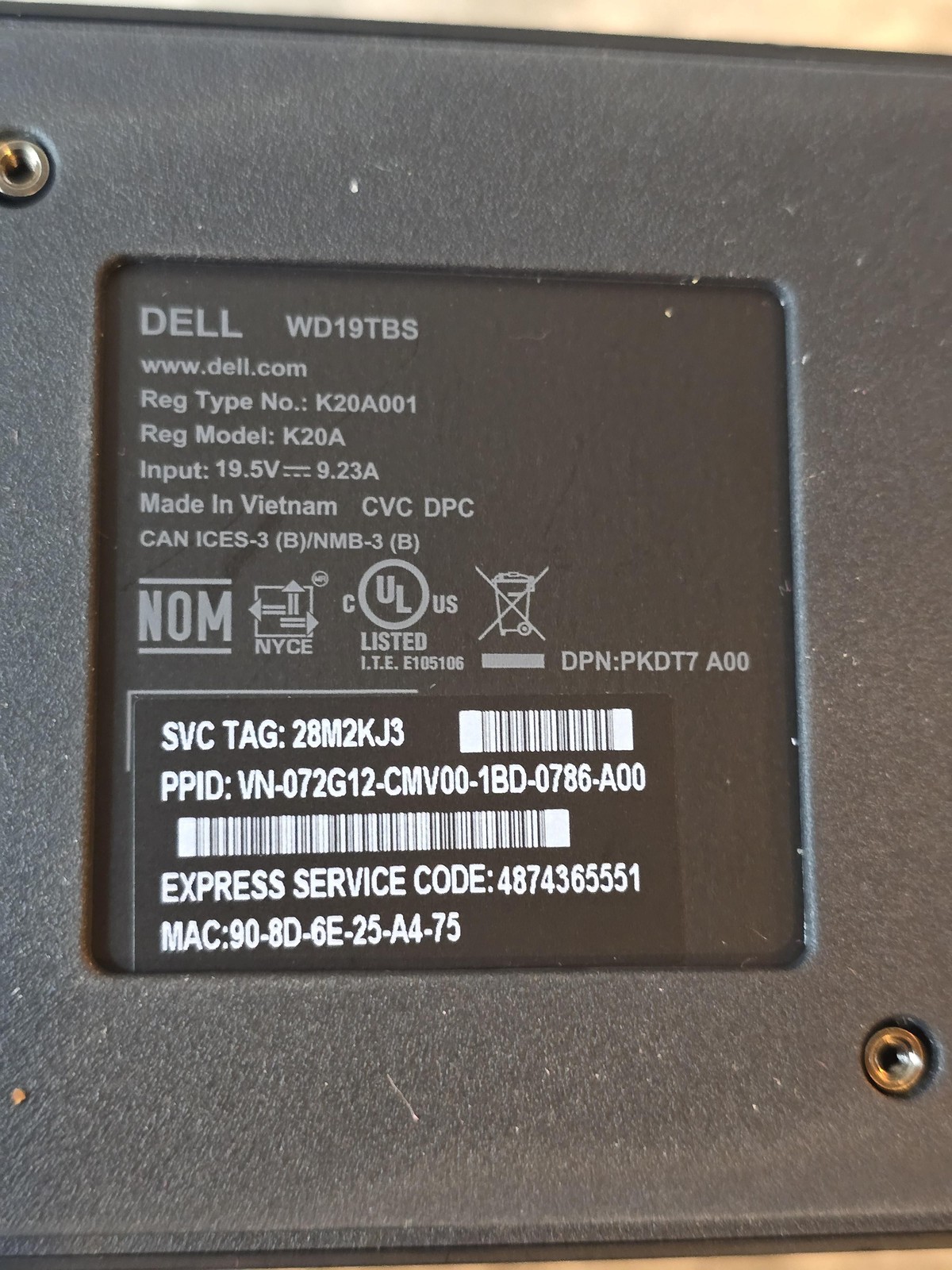 Dell WD19TBS Thunderbolt Docking Station USB-C K20A 180W No PSU NO ADAPTER