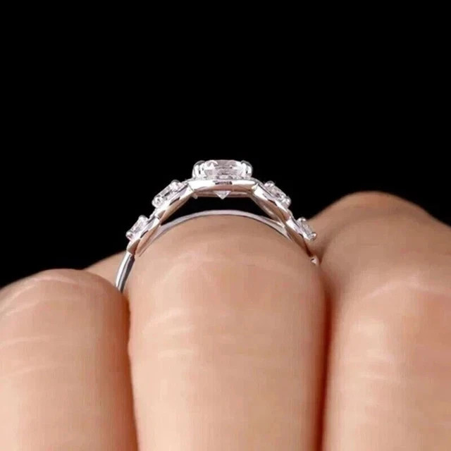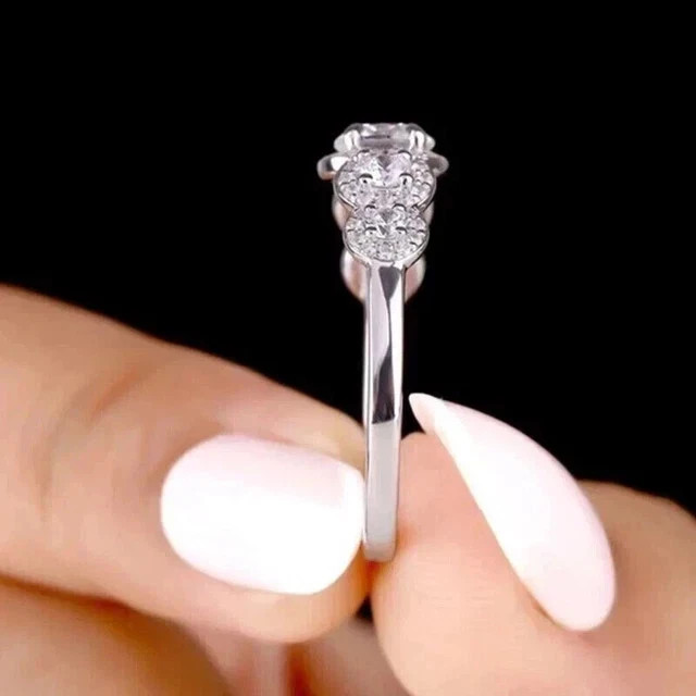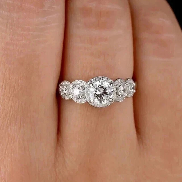 как выглядит 2Ct Round Cut Lab-Created Diamond Engagement Wedding Ring 14K White Gold Plated фото