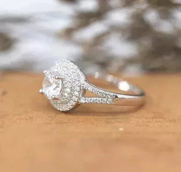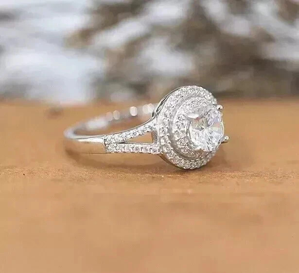 Lab Created Diamond Women's Engagement Ring 2Ct Round Cut 14K White Gold Plated