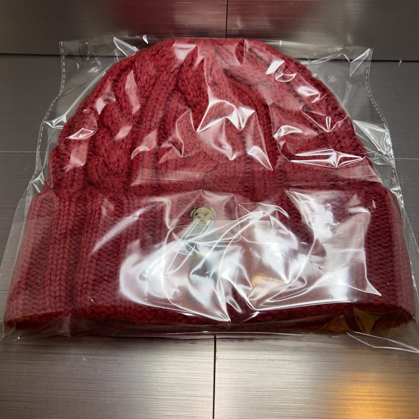 Polo Ralph Lauren St. Andrew Preppy Bear Cable Knit Wool Beanie, Toque Red 2010s