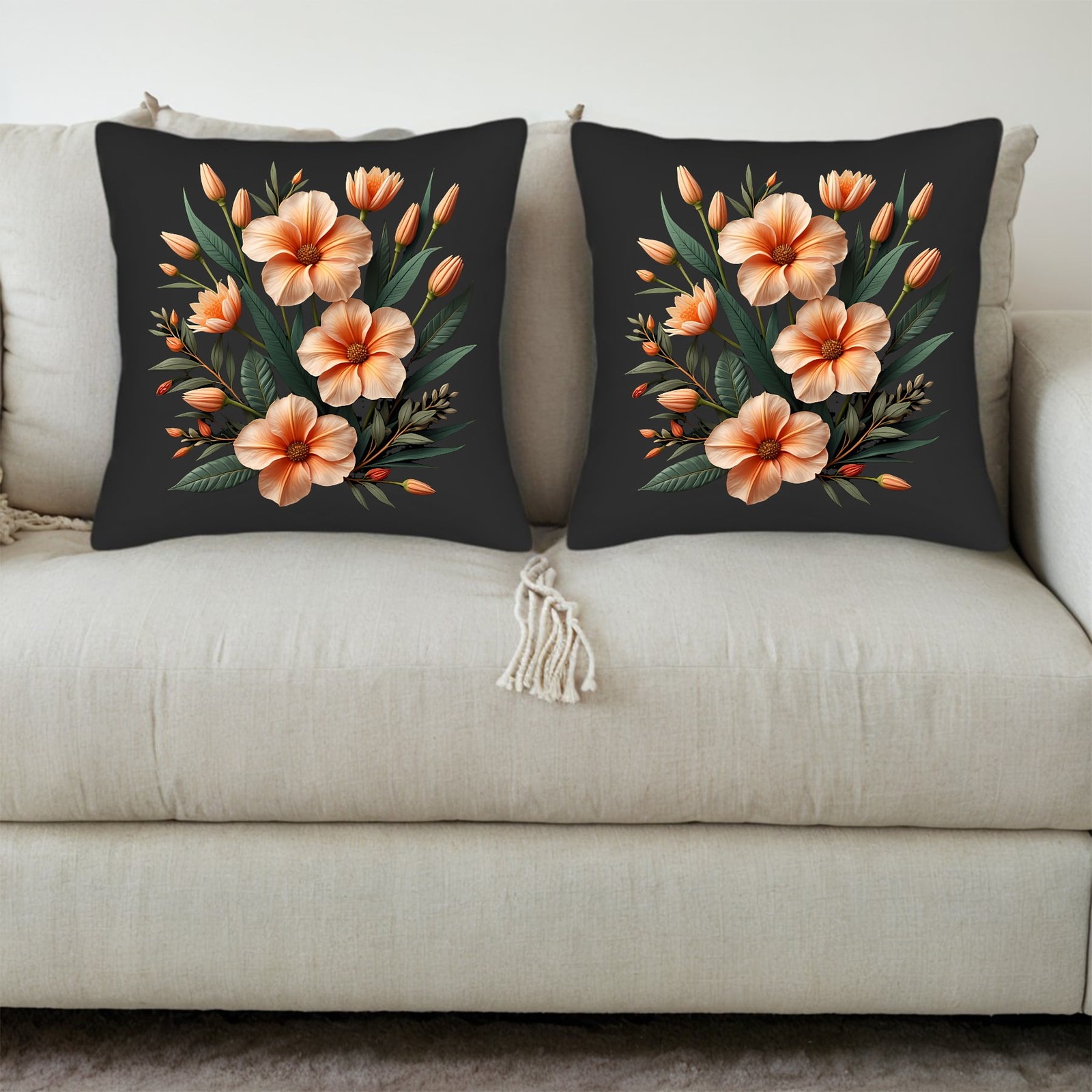 Elegant Floral Throw Pillow Covers Set of 2 - 18x18in Peach Flowers