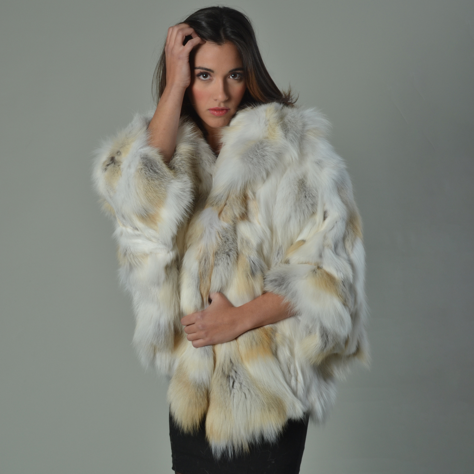 Hooded White Golden Fox Fur Cape Real Fur SAGA Fur