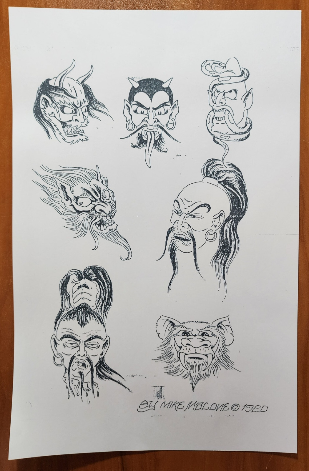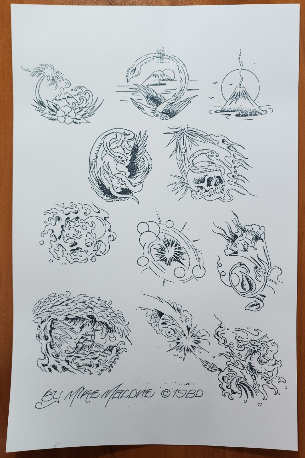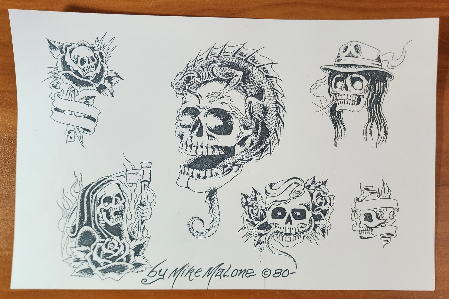 3 Mike Rollo Malone Traditional Vintage Tattoo Flash Production Sheets 1980