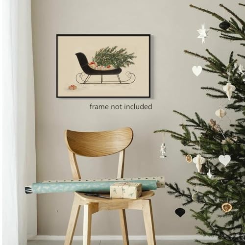 OAOPIC Vintage Christmas Canvas Wall Art Poster, 12L x 16W Rustic Sleigh