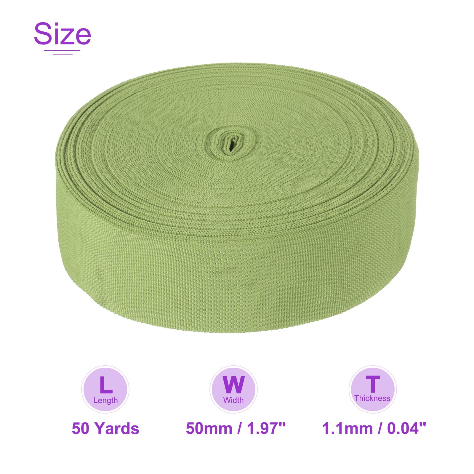 50 Yard x 50mm Nylon Webbing Strap for Backpack Strapping, Sewing, Light Green