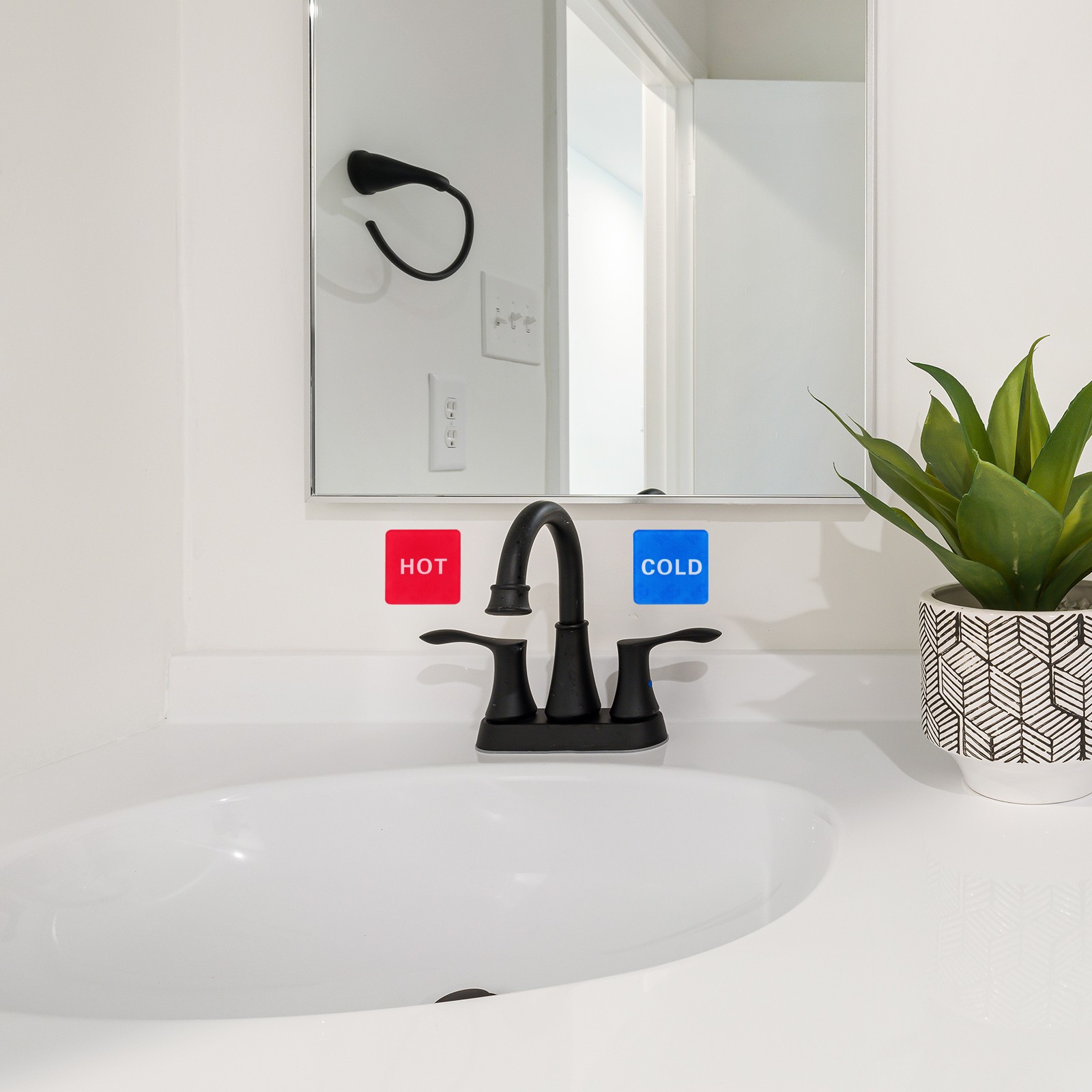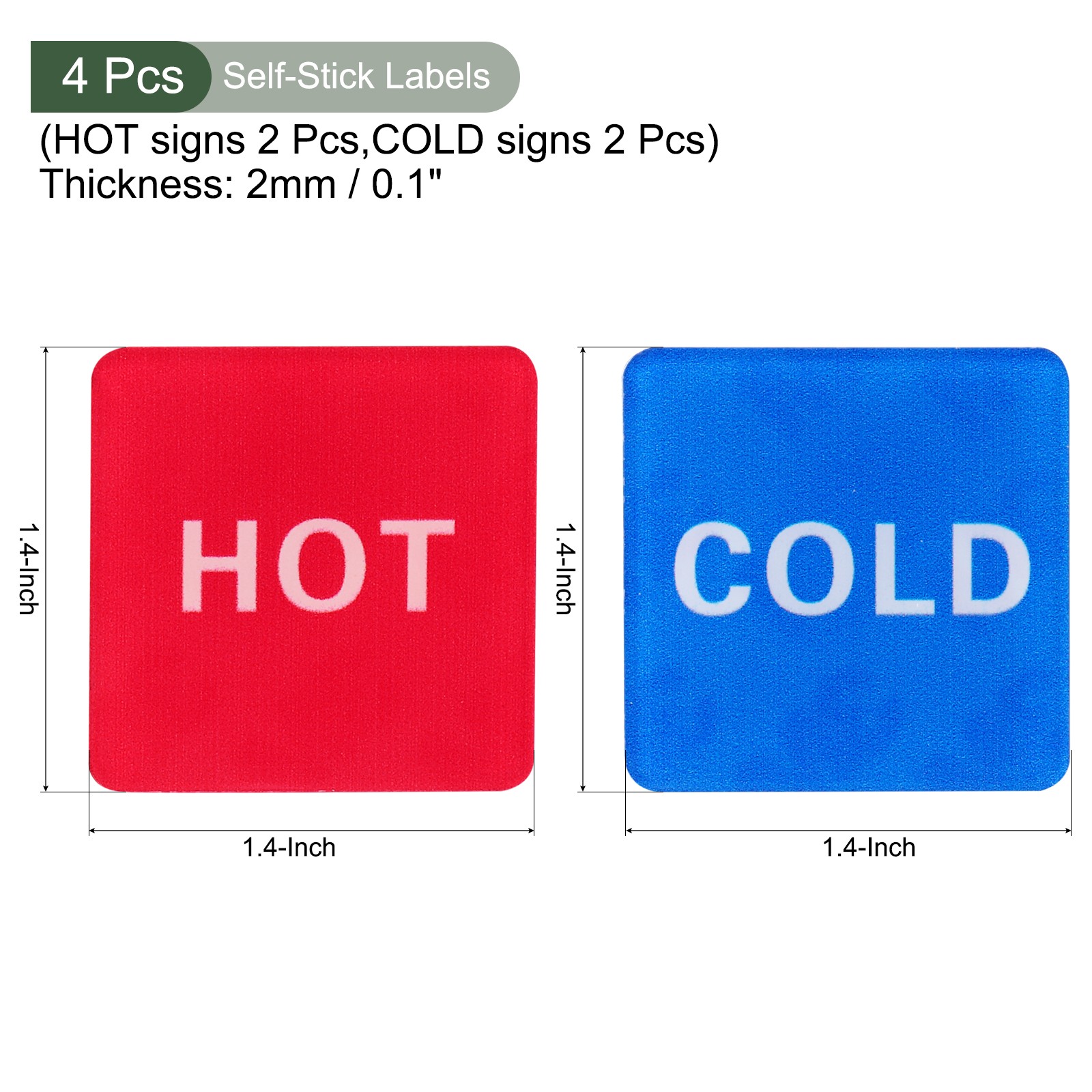 4Pcs Hot Cold Water Sticker Label,Sticker Sign Blue Red White,1.4 x 1.4 x 2