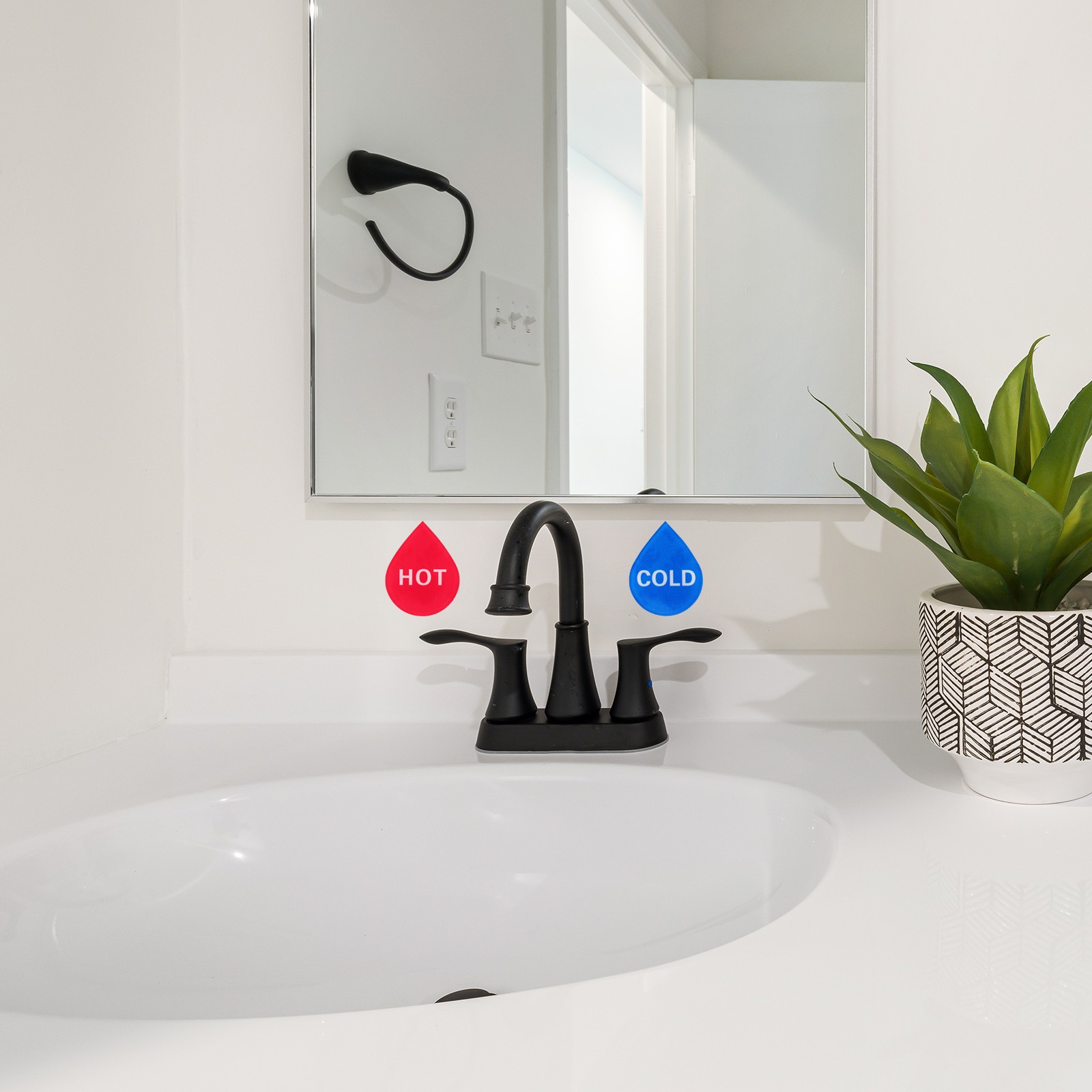 как выглядит 4Pcs Hot Cold Water Sticker Label,Sticker Sign Blue Red White,1.7" x 1.4" x 2" фото