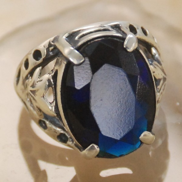 как выглядит Blue Topaz Gemstone Silver Handmade Jewelry Ring Size 8 H58 фото