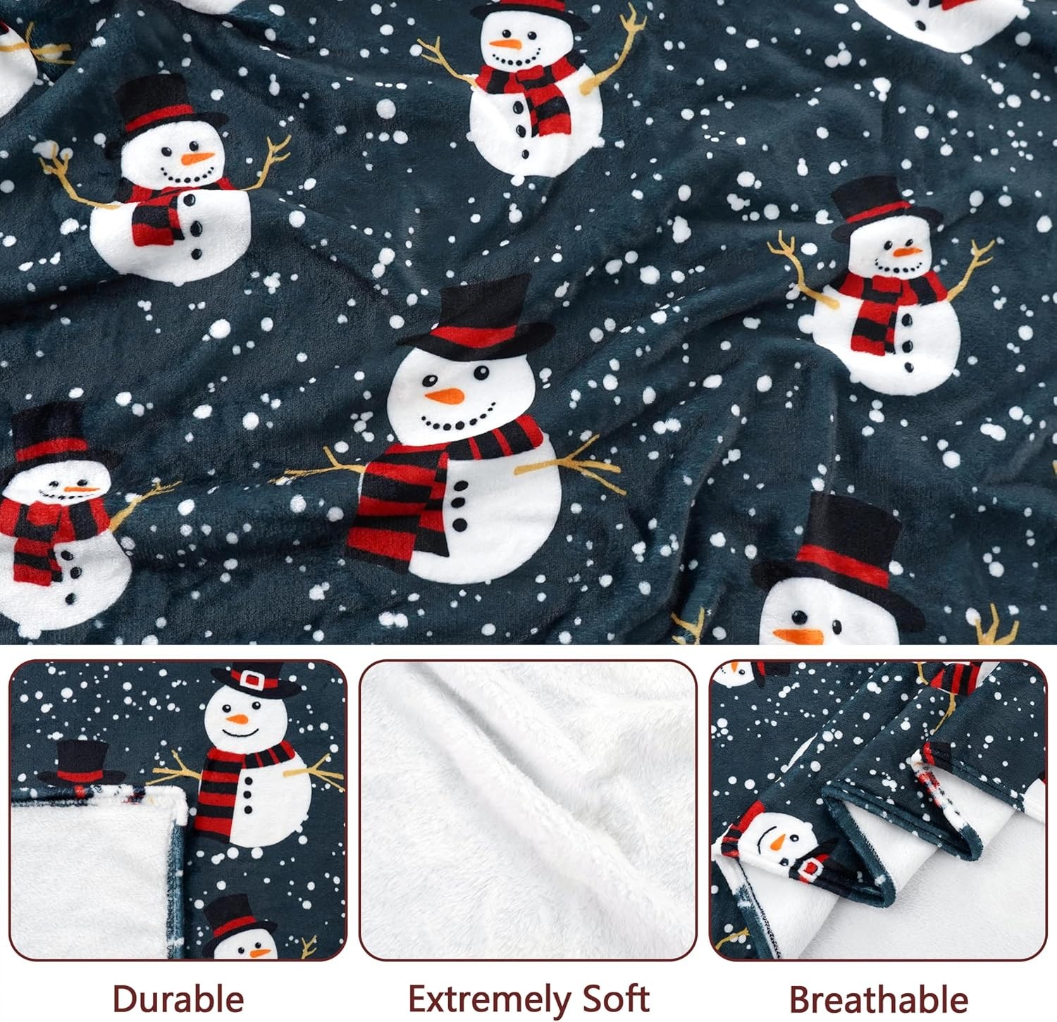 Merry Christmas Snowman Throw Blanket - 50x60 Inch Soft, Lightweight Cozy Plush