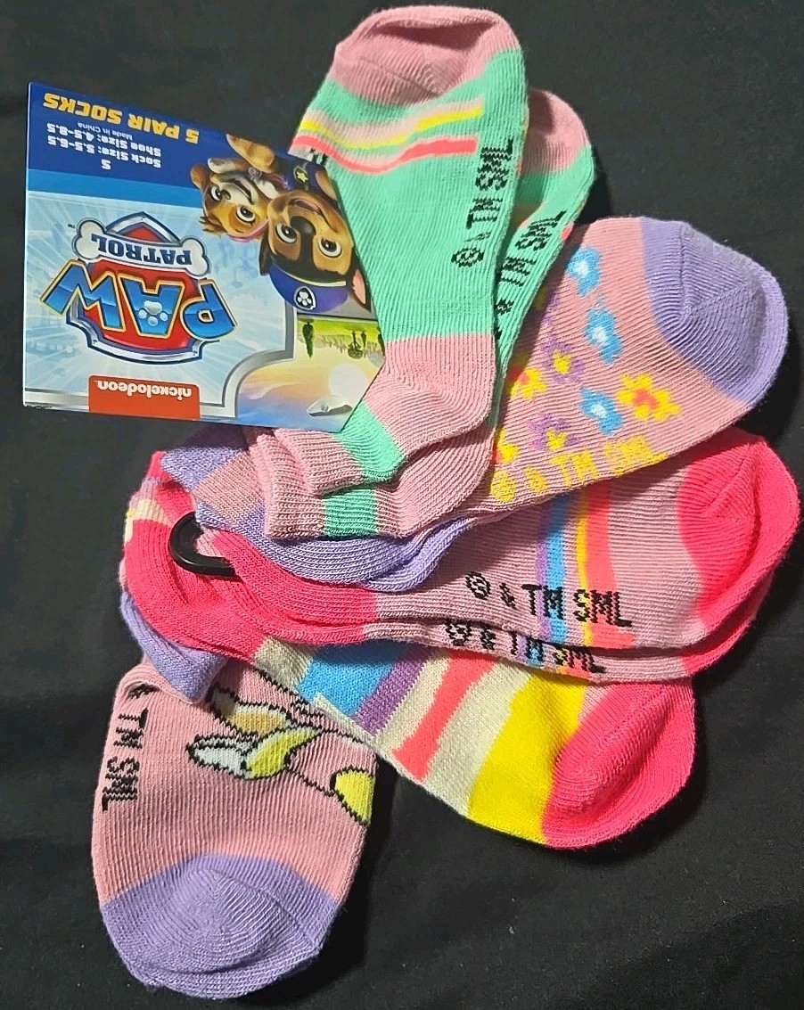 Nickelodeon Paw Patrol Girls Shoe Size 4-7.5 Colorful 5 Pack No Show Socks NWT