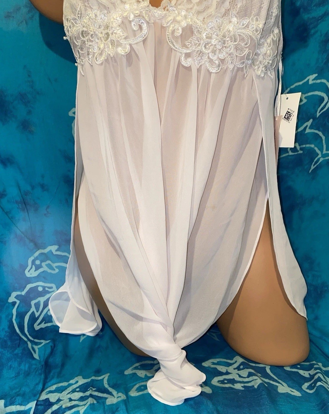 NWT Linea Donatella Pink Bridal Embroidered Pearl Lace Chiffon Nightgown Gown S