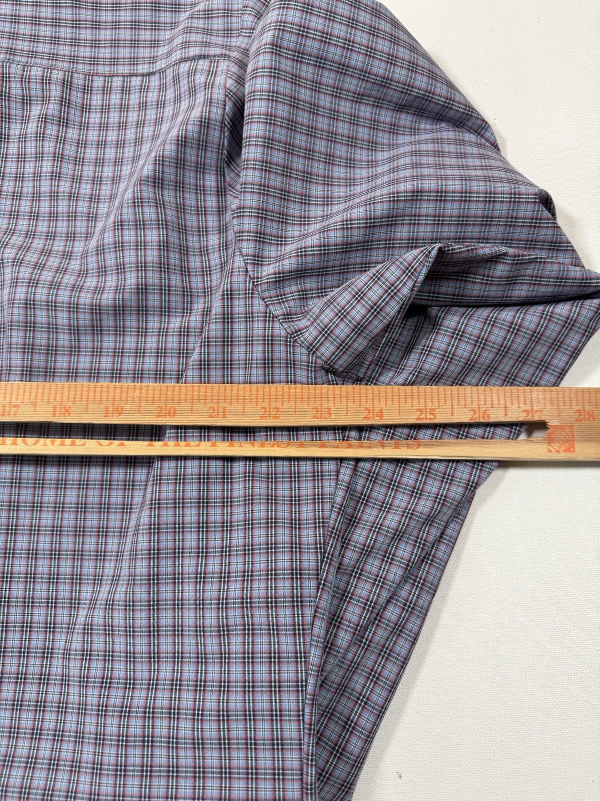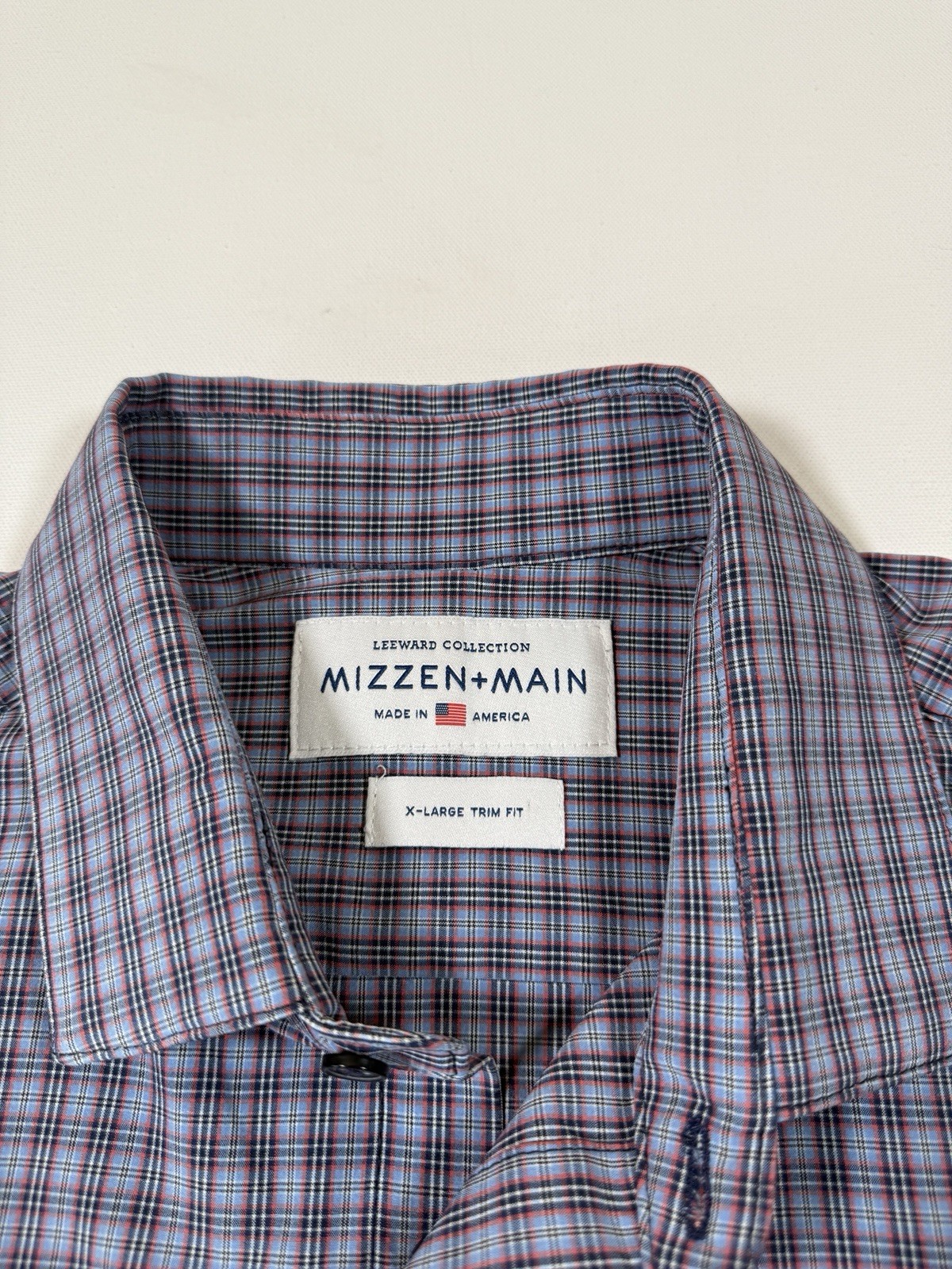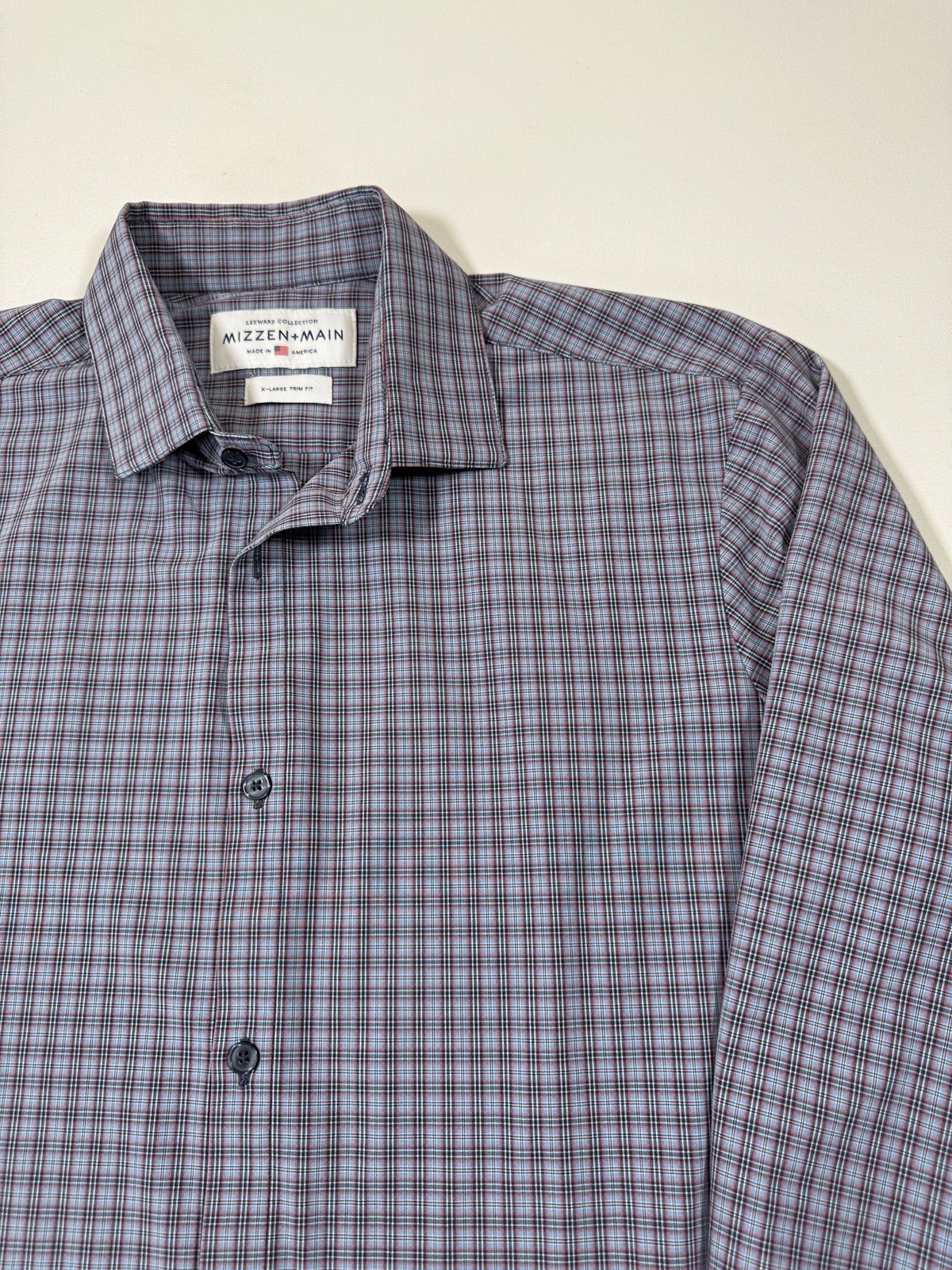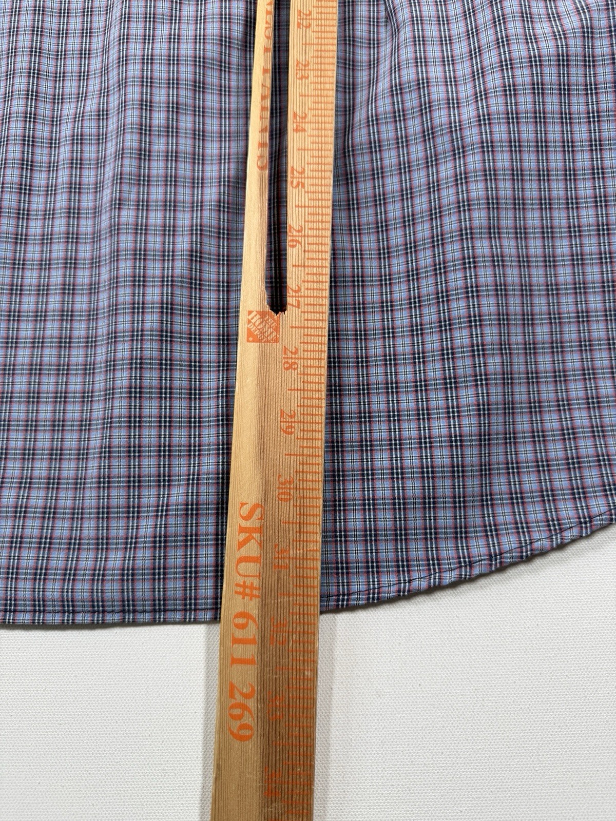 как выглядит Mizzen Main Shirt Mens XL Trim Fit Blue Plaid Performance Stretch Button America фото