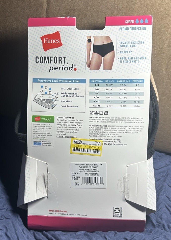 Hanes Comfort, Period. Women's Brief Underwear, Super Leaks, 3-Pack 9/2XL A
