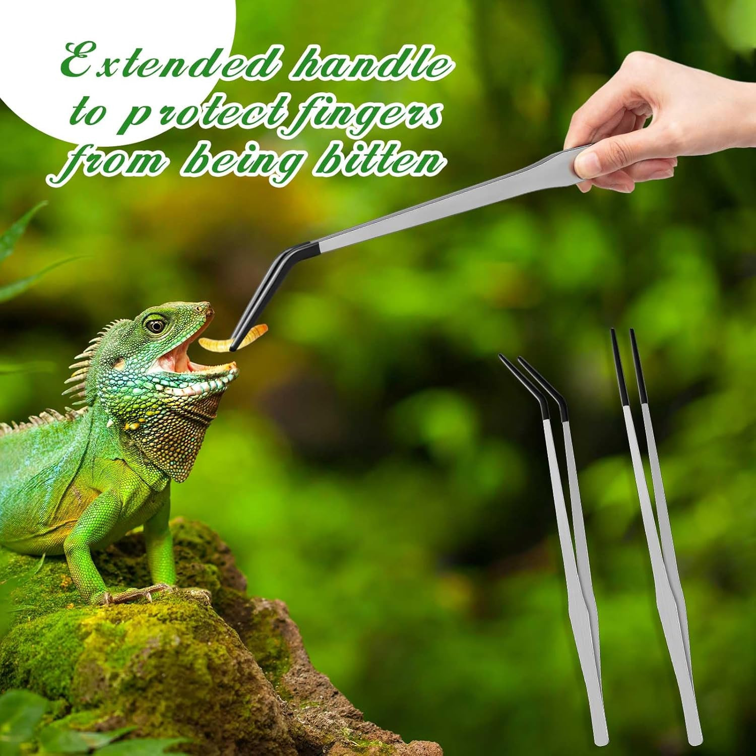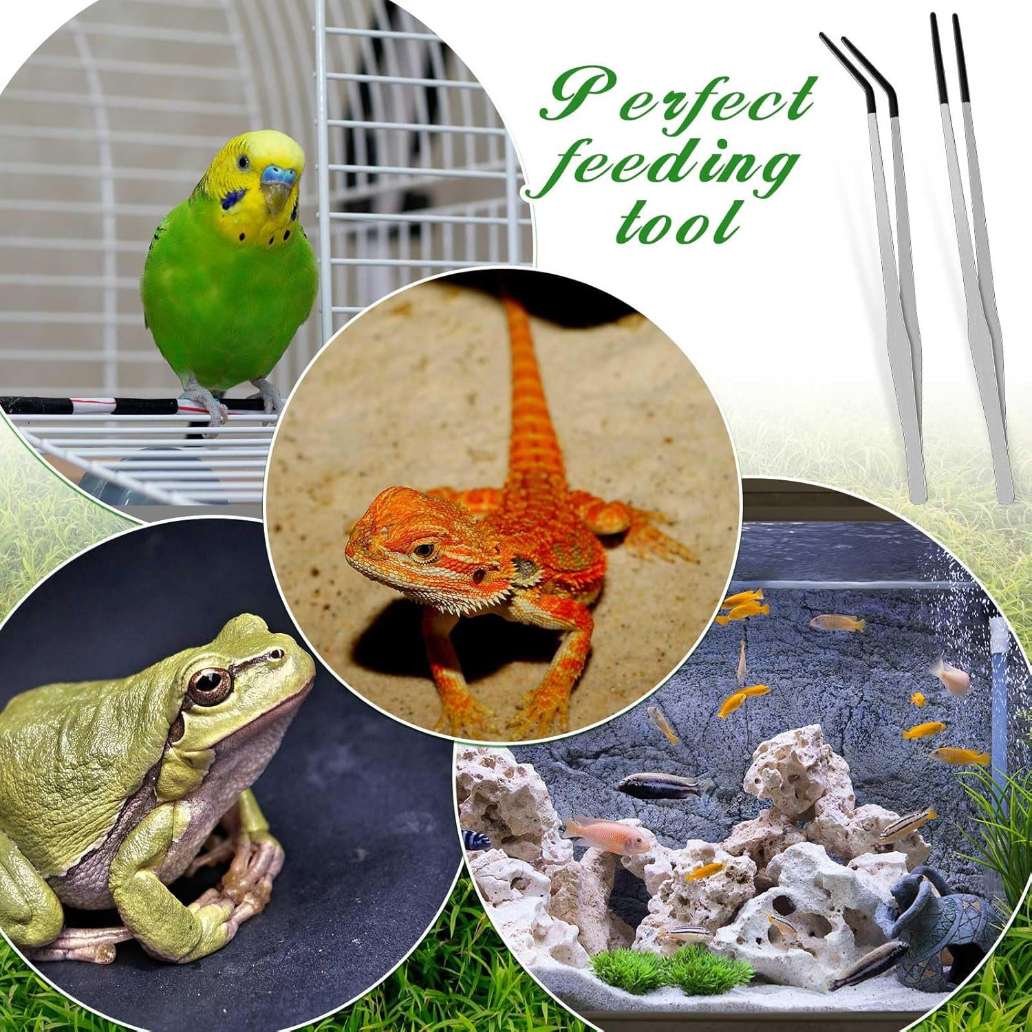 2 Pcs Extra Long Stainless Steel Reptile Feeding Tongs with Rubber Tip 15 Inc...