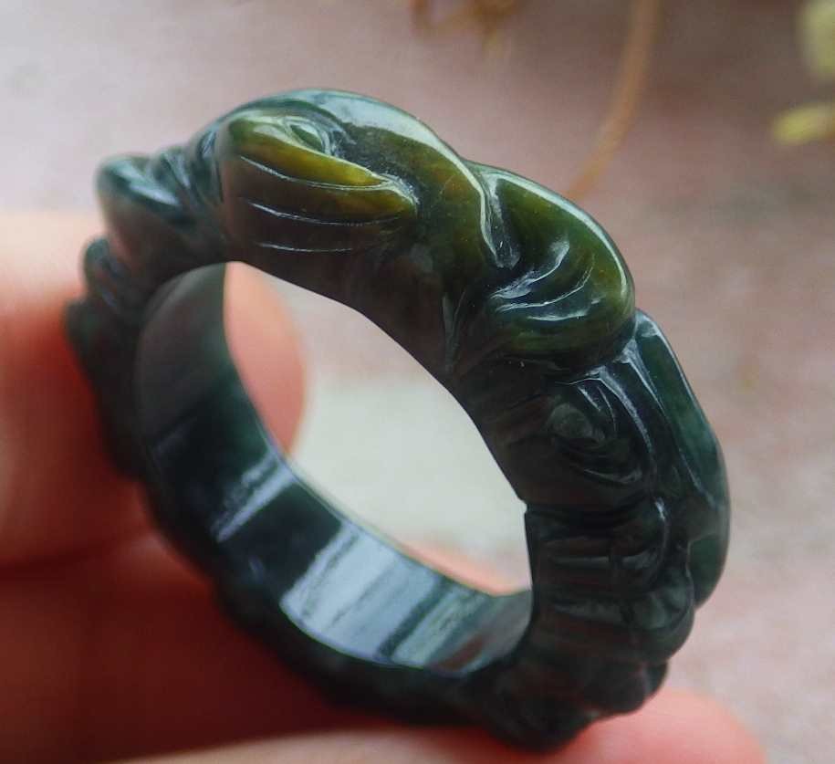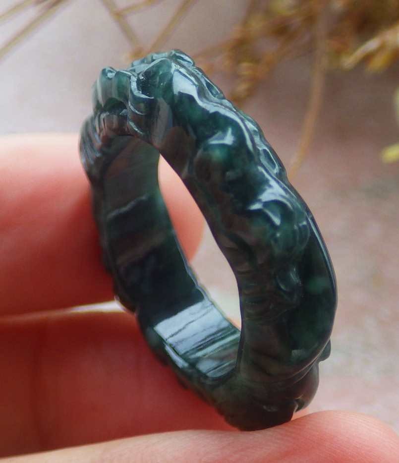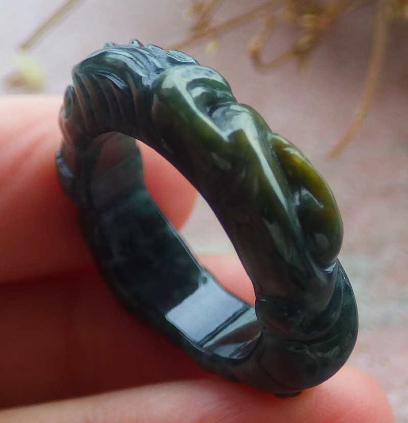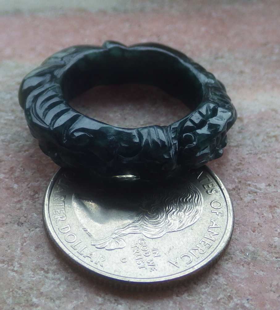 как выглядит Video Certified Green Natural A Jadeite Jade Dragon Ring NO. 9  418525 фото
