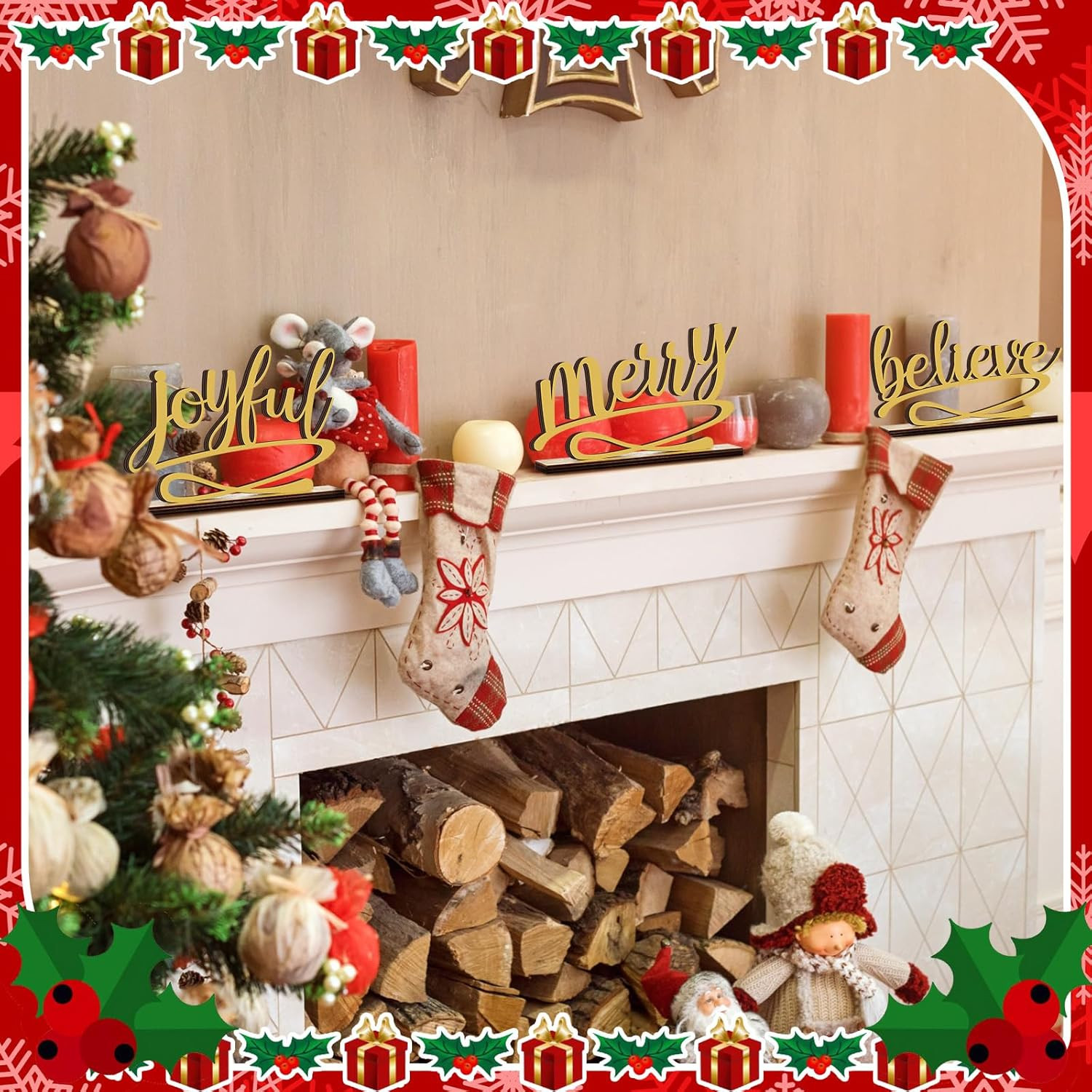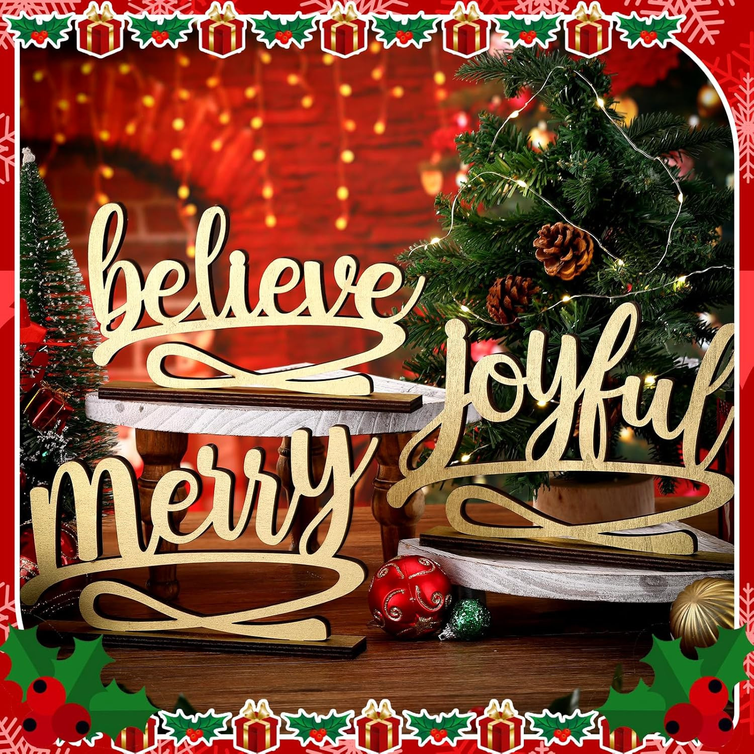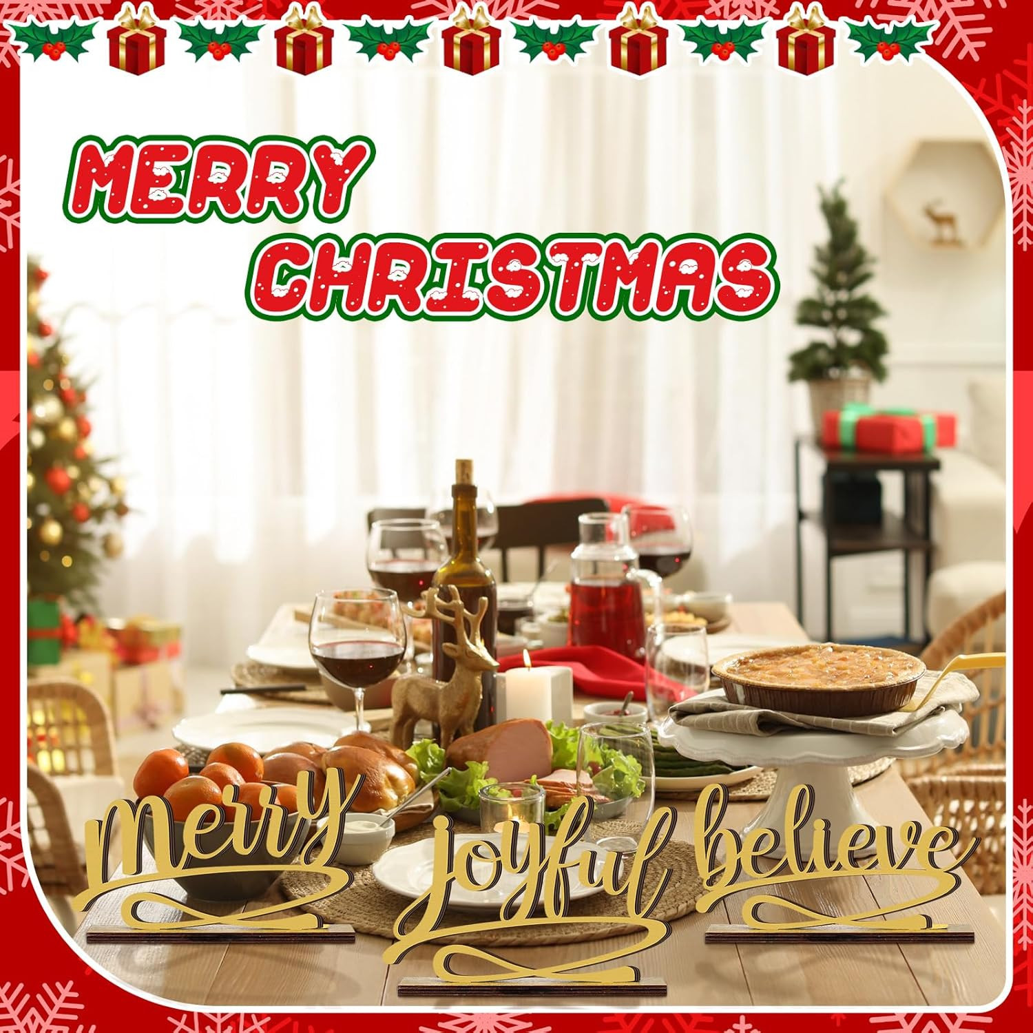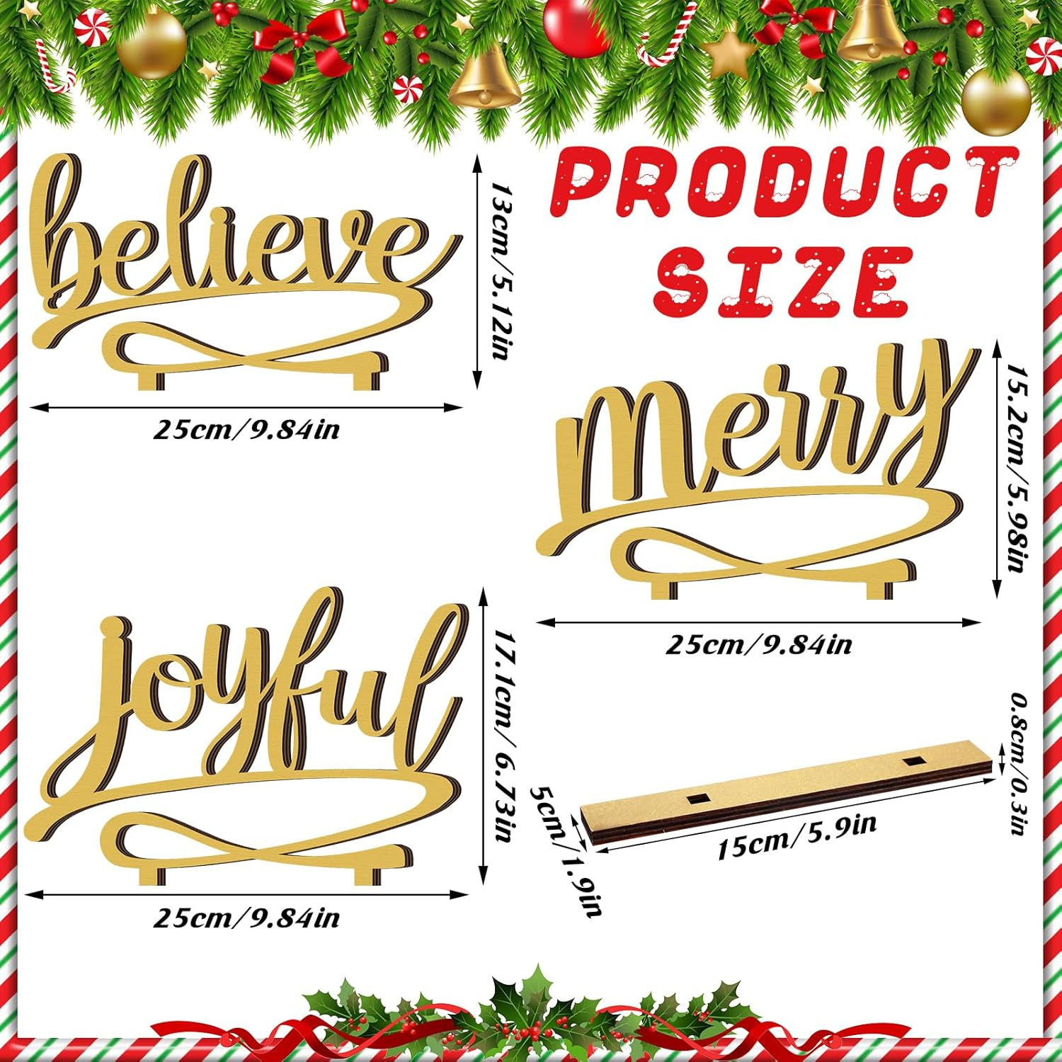 3 Pcs Christmas Tabletop Word Sign Believe Joyful Merry Xmas Table Decor Freesta