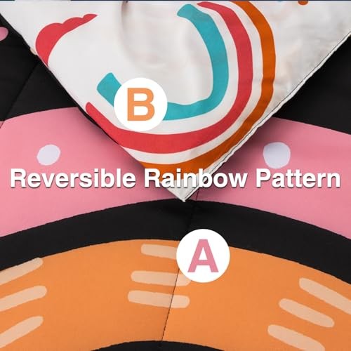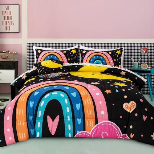 Bedding 6 Pcs Cartoon Rainbow Bedding Set with Smile Moon Twin-6pc Black