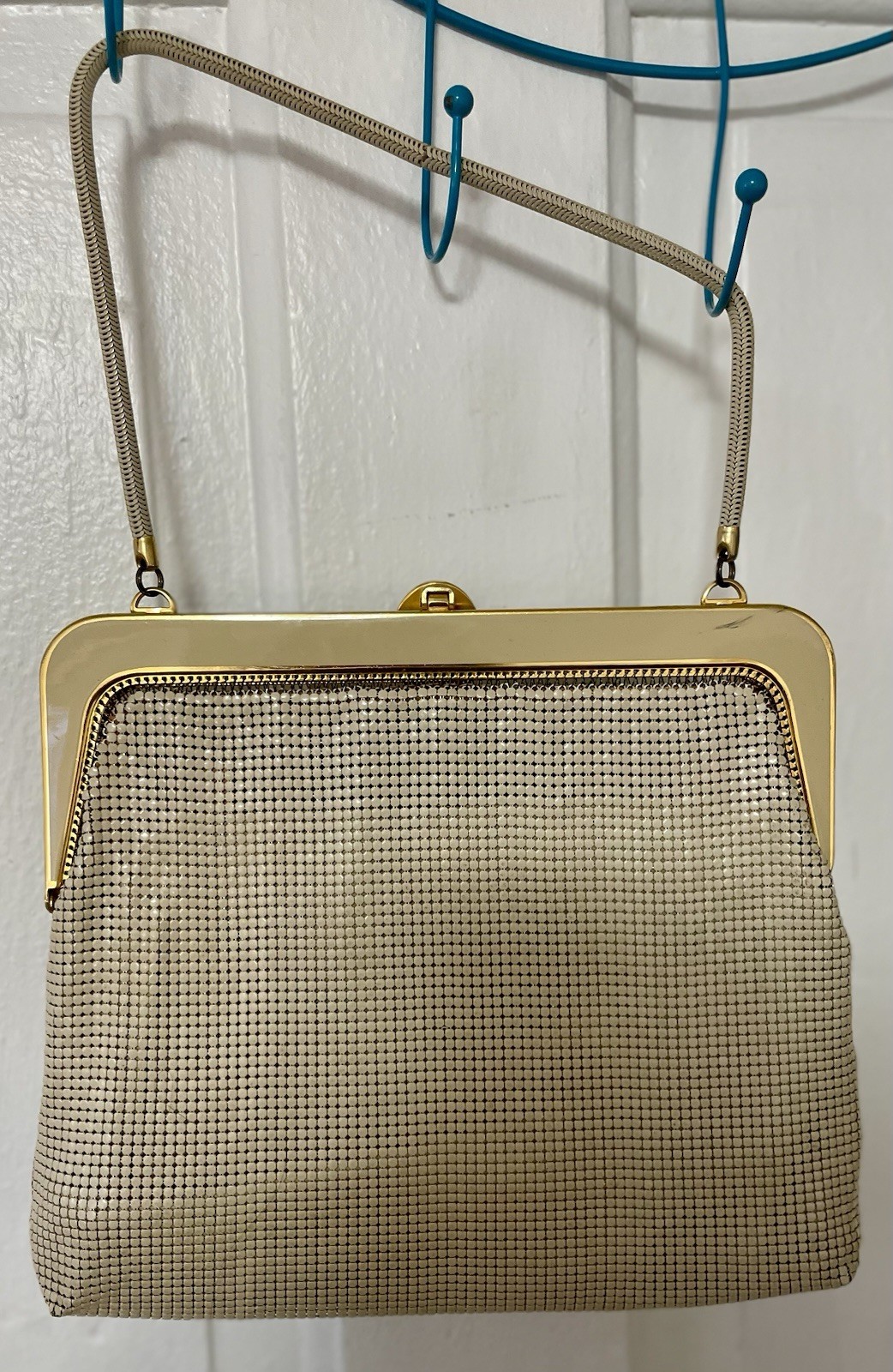 как выглядит VTG Glomesh Metal Mesh Disco Clasp Cream Purse фото