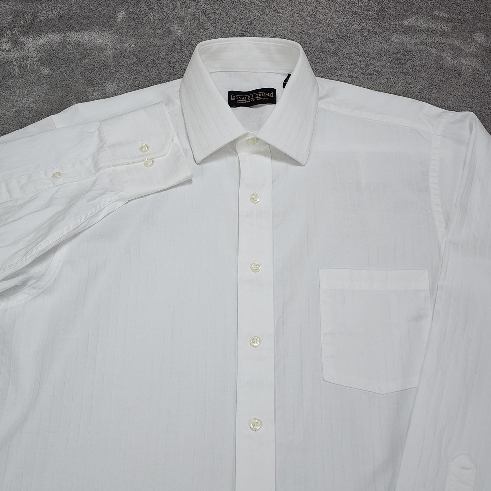Donald J. Trump Shirt Mens 16 34/35 White Button Down Regular Fit Tonal Stripe