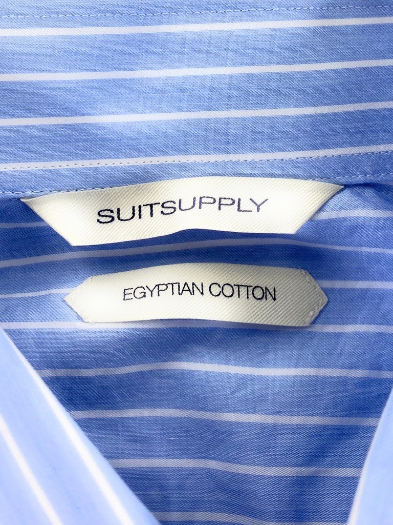 как выглядит Suitsupply Mens EXTRA SLIM FIT Egyptian Cotton Blue Stripe Dress Shirt 16 фото