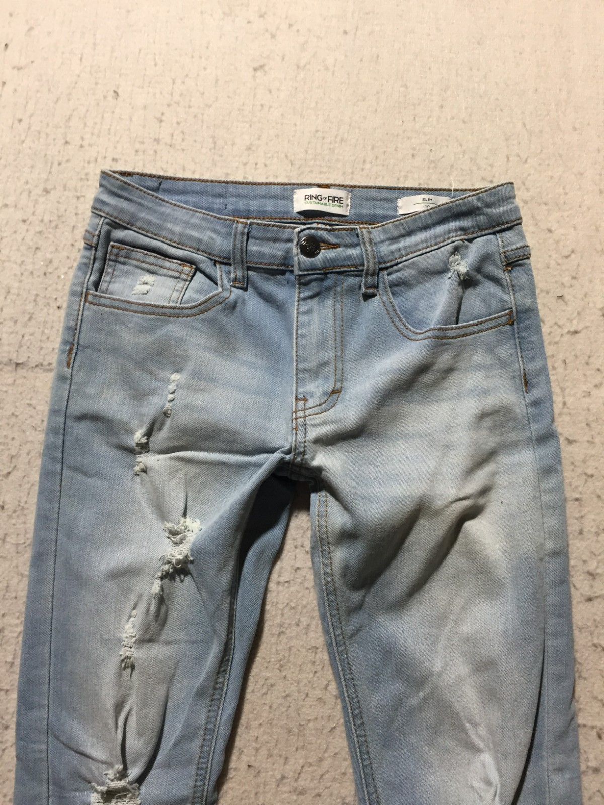 Ring Of Fire Jeans Boys 10 Slim Light Blue Faded Distressed Legs Pockets