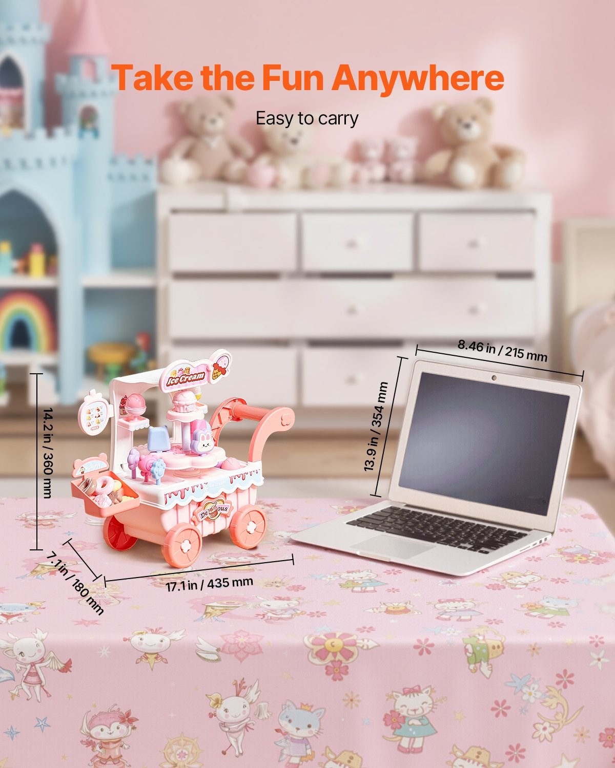 Ice Cream Cart for Kids 27 PCS Accessories Pretend Play Store Storage Trol